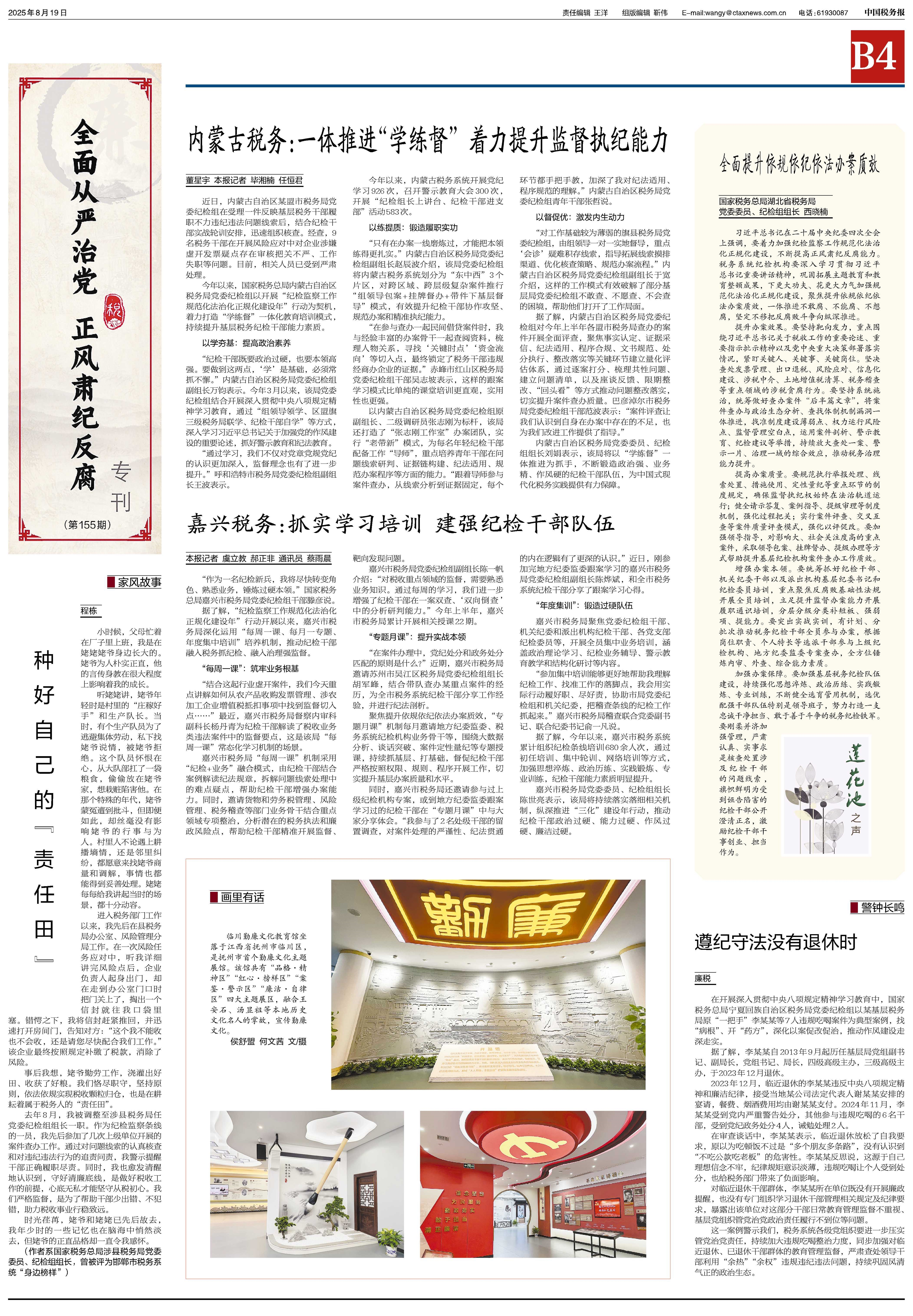 据了解,“纪检监察工作规范化法治化正规化建设年”行动开展以来,嘉兴市税务局深化运用“每周一