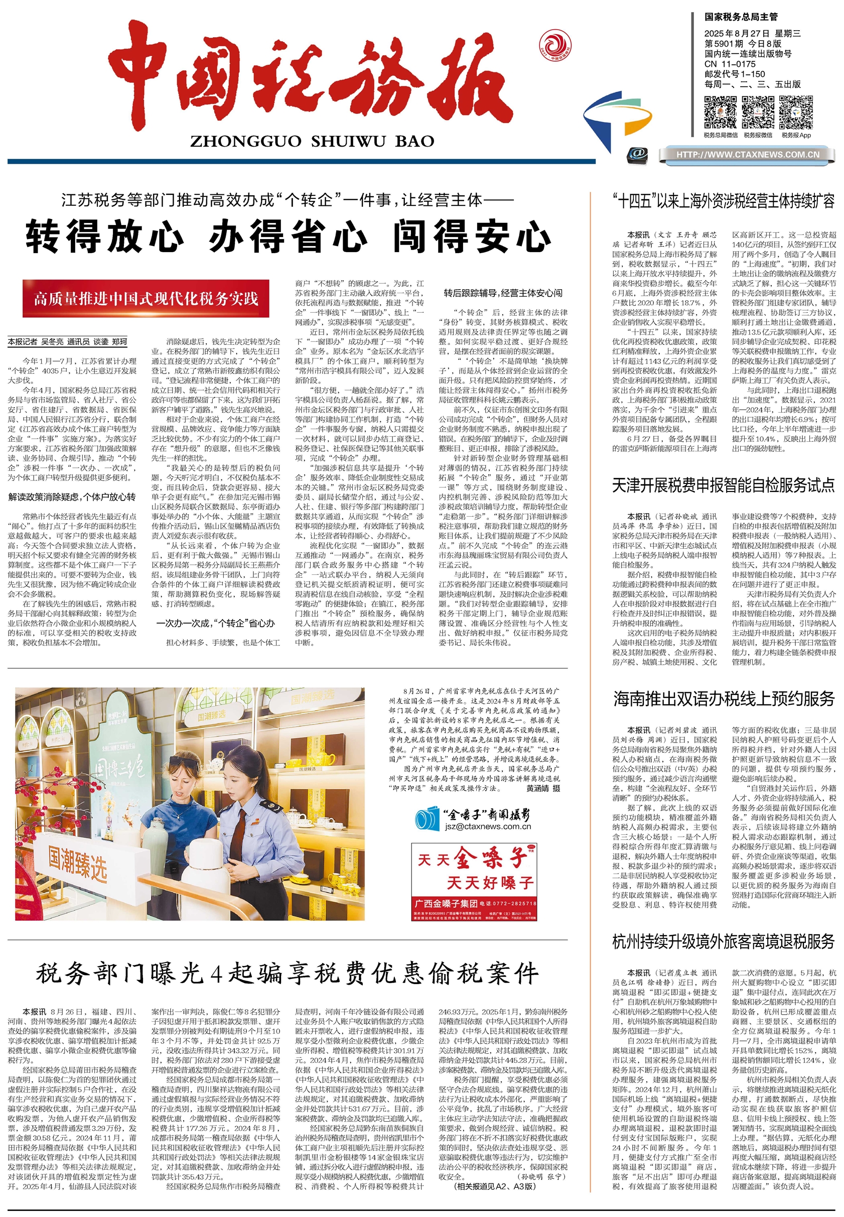 今年4月,国家税务总局江苏省税务局与省市场监管局、省人社厅、省公安厅、省住建厅、省数据局、省医保局、中国人民银行江苏省分行,