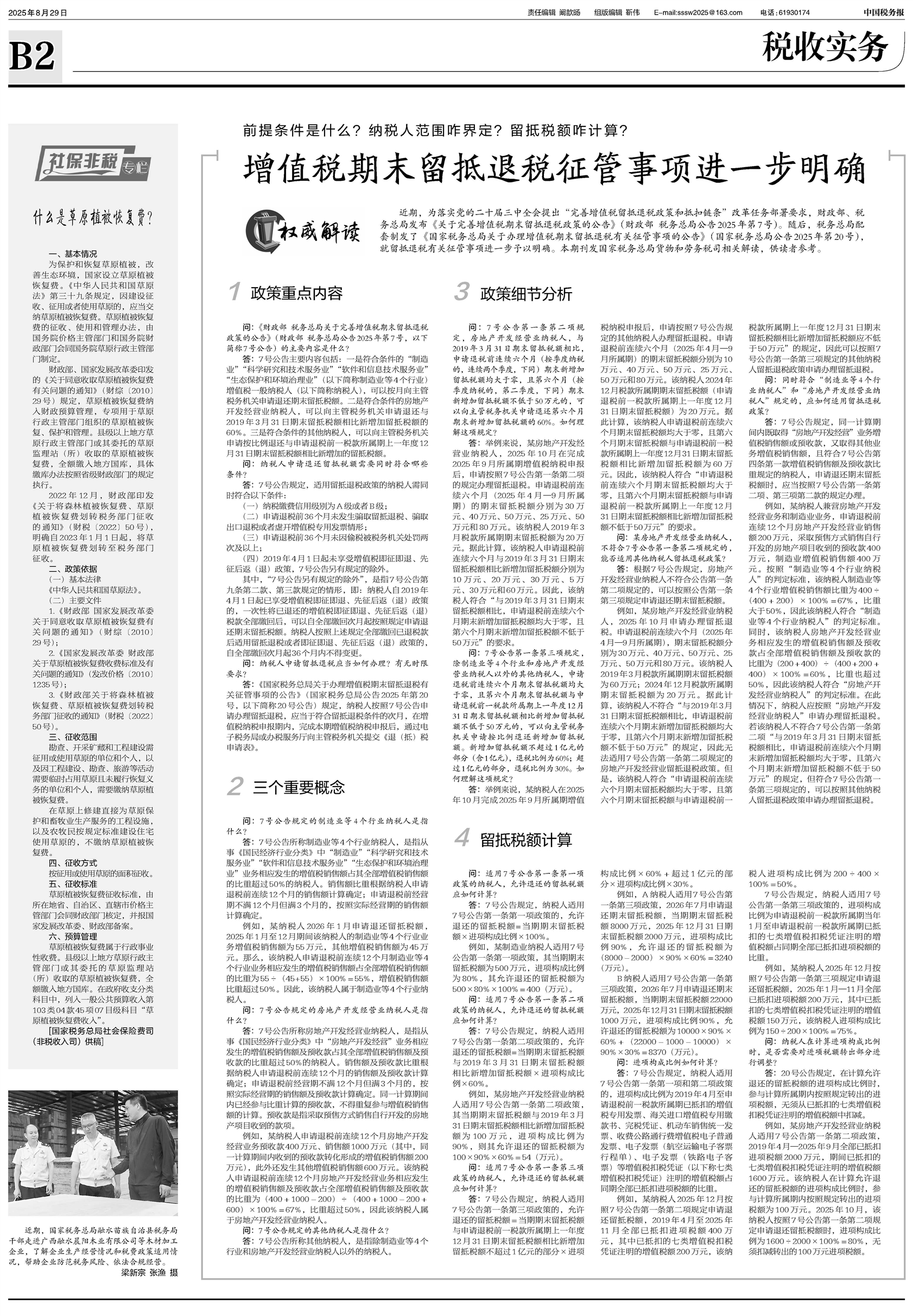 近期,为落实党的二十届三中全会提出“完善增值税留抵退税政策和抵扣链条”改革任务部署要求,财政部、税务总局发布《关于完善增值税期末留抵退税政策的公告》(财政部 税务总局公告2025年第7号)。随后,税务总局配套制发了《国家税