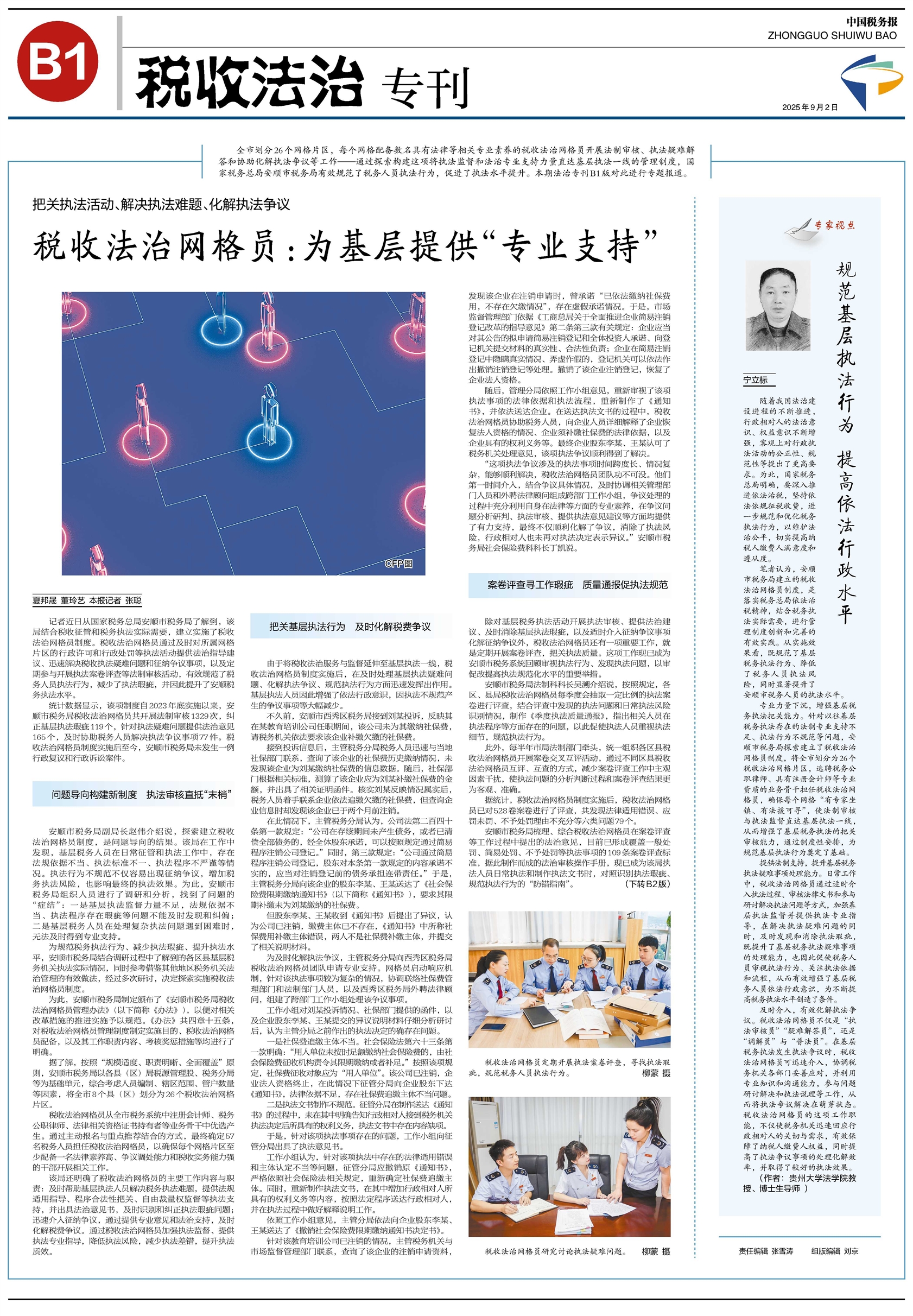 全市划分26个网格片区,每个网格配备数名具有法律等相关专业素养的税收法治网格员开展法制审核、执法疑难解答和协助化解执法争议等工作——通过探索构建这项将执法监督和法治专业支持力量直达基层执法一线的管理制度,国家税务总局安顺市