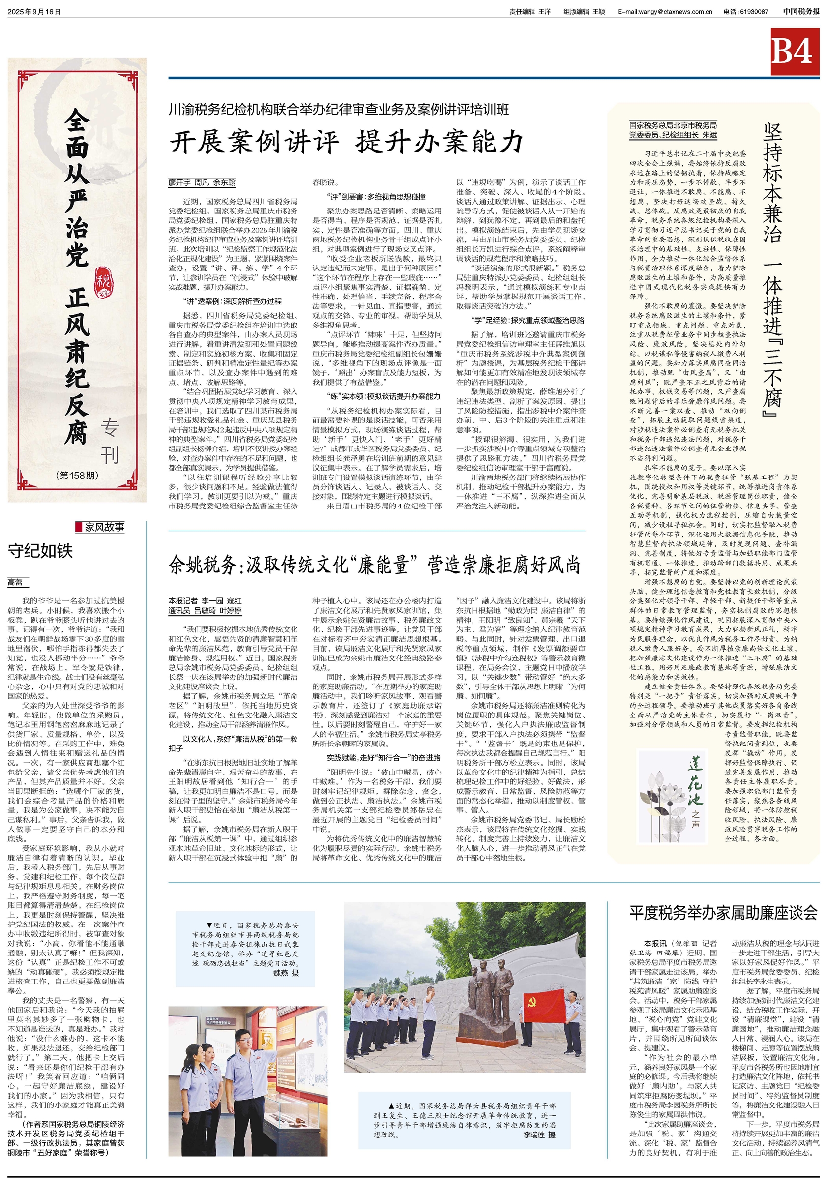 近期,国家税务总局四川省税务局党委纪检组、国家税务总局重庆市税务局党委纪检组、国家税务总局驻重庆特派办党委纪检组联合举办2025年川渝税务纪检机构纪律审查业务及案例讲评培训班。此次培训以“纪检监察工作规范化法治化正规化建设
