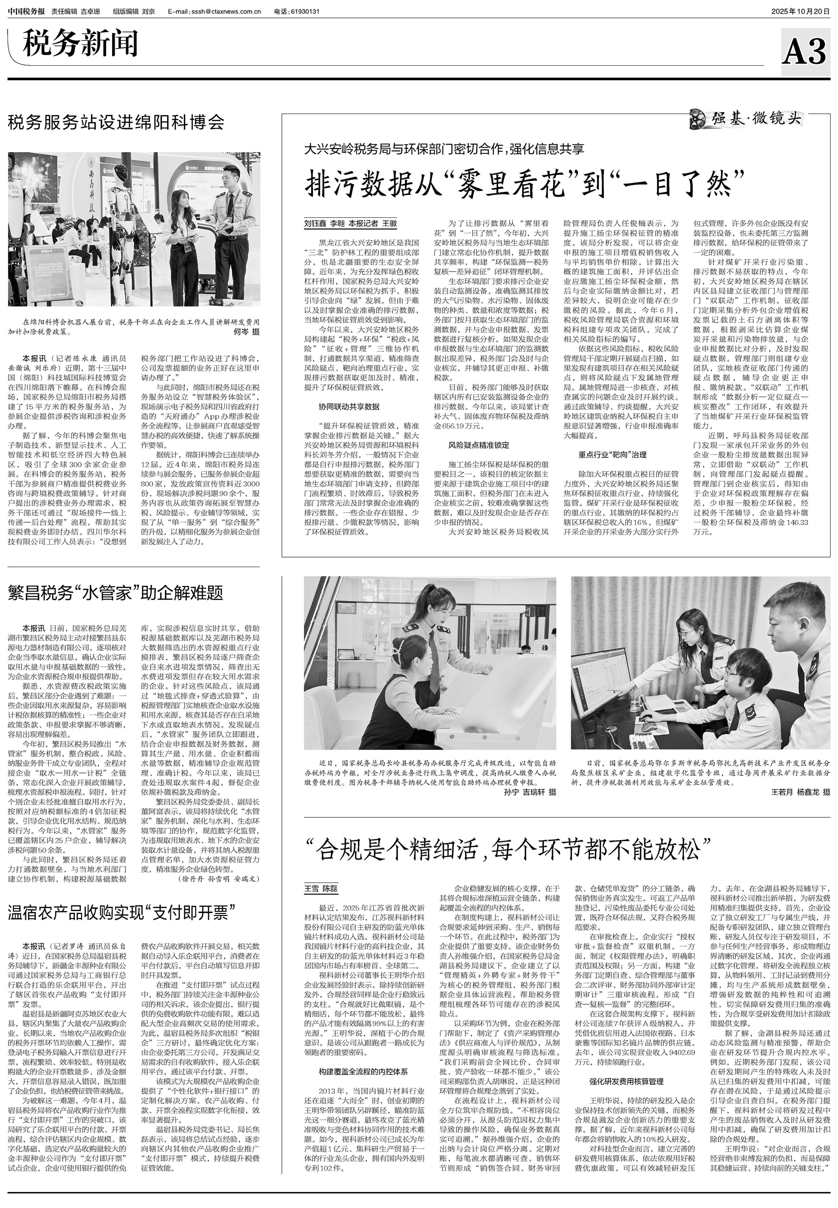 黑龙江省大兴安岭地区是我国“三北”防护林工程的重要组成部分,也是北疆重要的生态安全屏障。近年来,为充分发挥绿色税收杠杆作用,国家税务总局大兴安岭地区税务局以环保税为抓手,积极引导企业向“绿”发展。但由于难以及时掌握企业准确