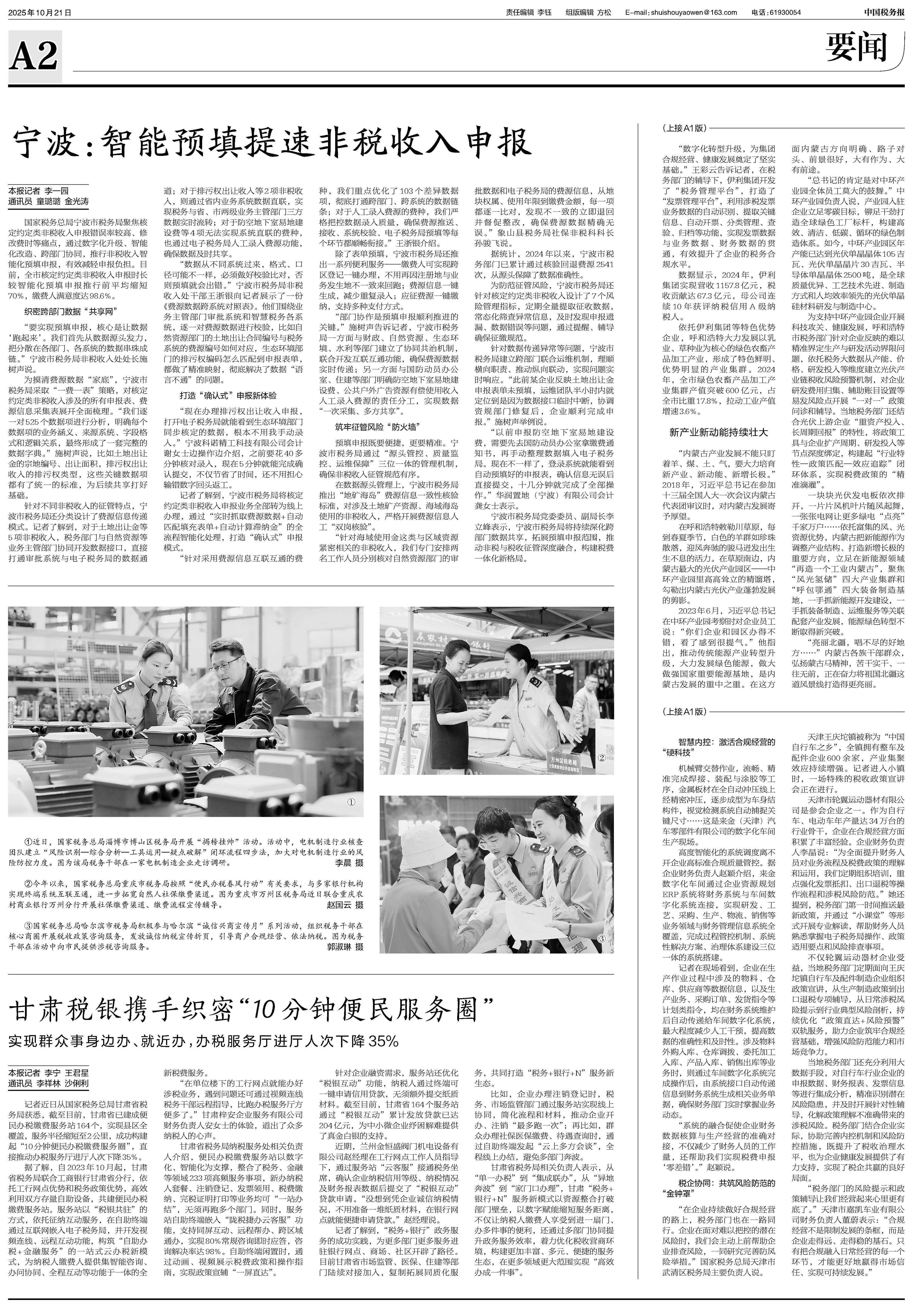 国家税务总局宁波市税务局聚焦核定约定类非税收入申报错误率较高、修改费时等痛点,通过数字化升级、智能化改造、跨部门协同,推行非税收入智能化预填申报,有效减轻申报负担。目前,全市核定约定类非税收入申报时长较智能化预填申报推行前