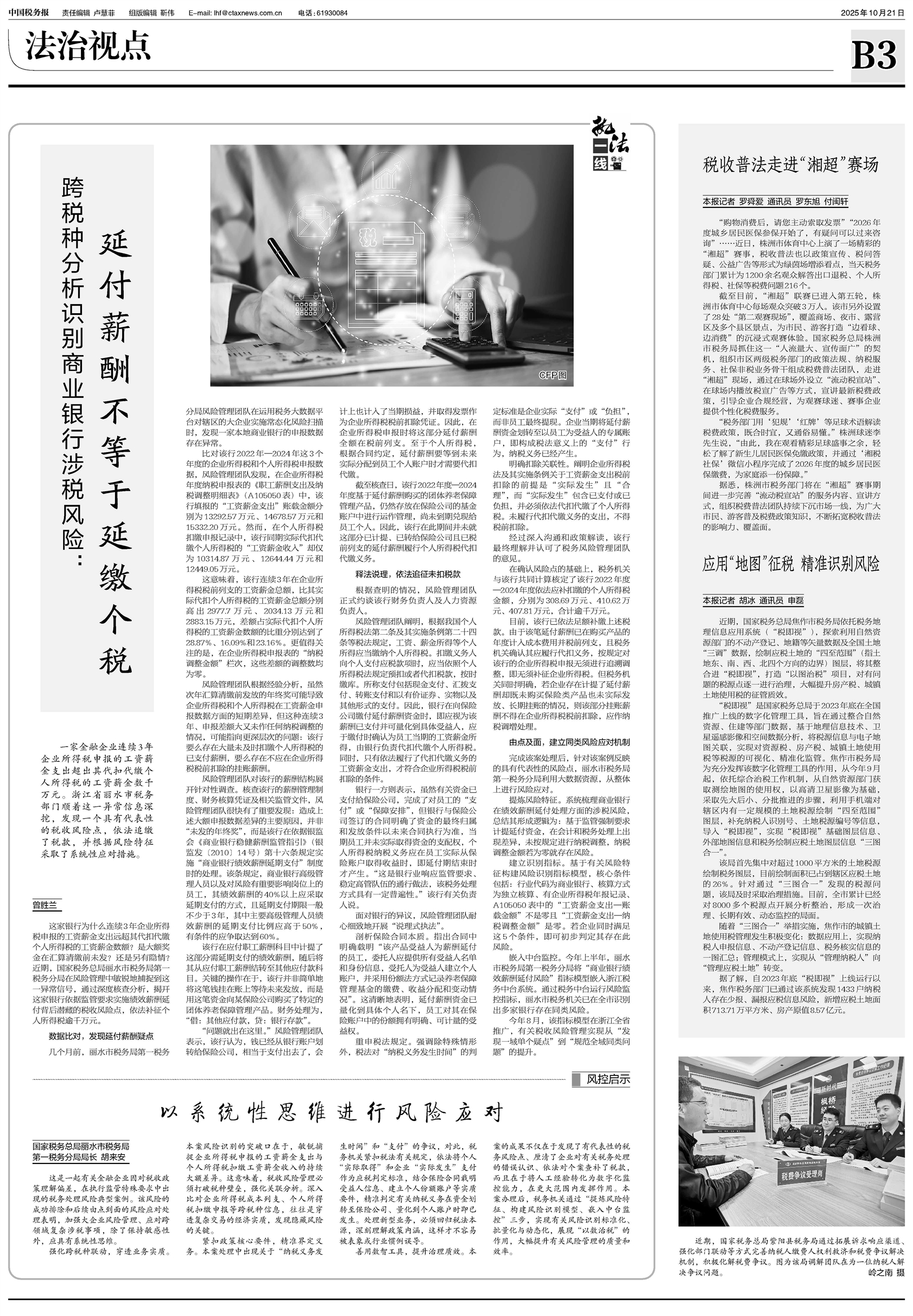 一家金融企业连续3年企业所得税申报的工资薪金支出超出其代扣代缴个人所得税的工资薪金数千万元。浙江省丽水市税务部门顺着这一异常信息深挖,发现一个具有代表性的税收风险点,依法追缴了税款,并根据风险特征采取了系统性应对措施。