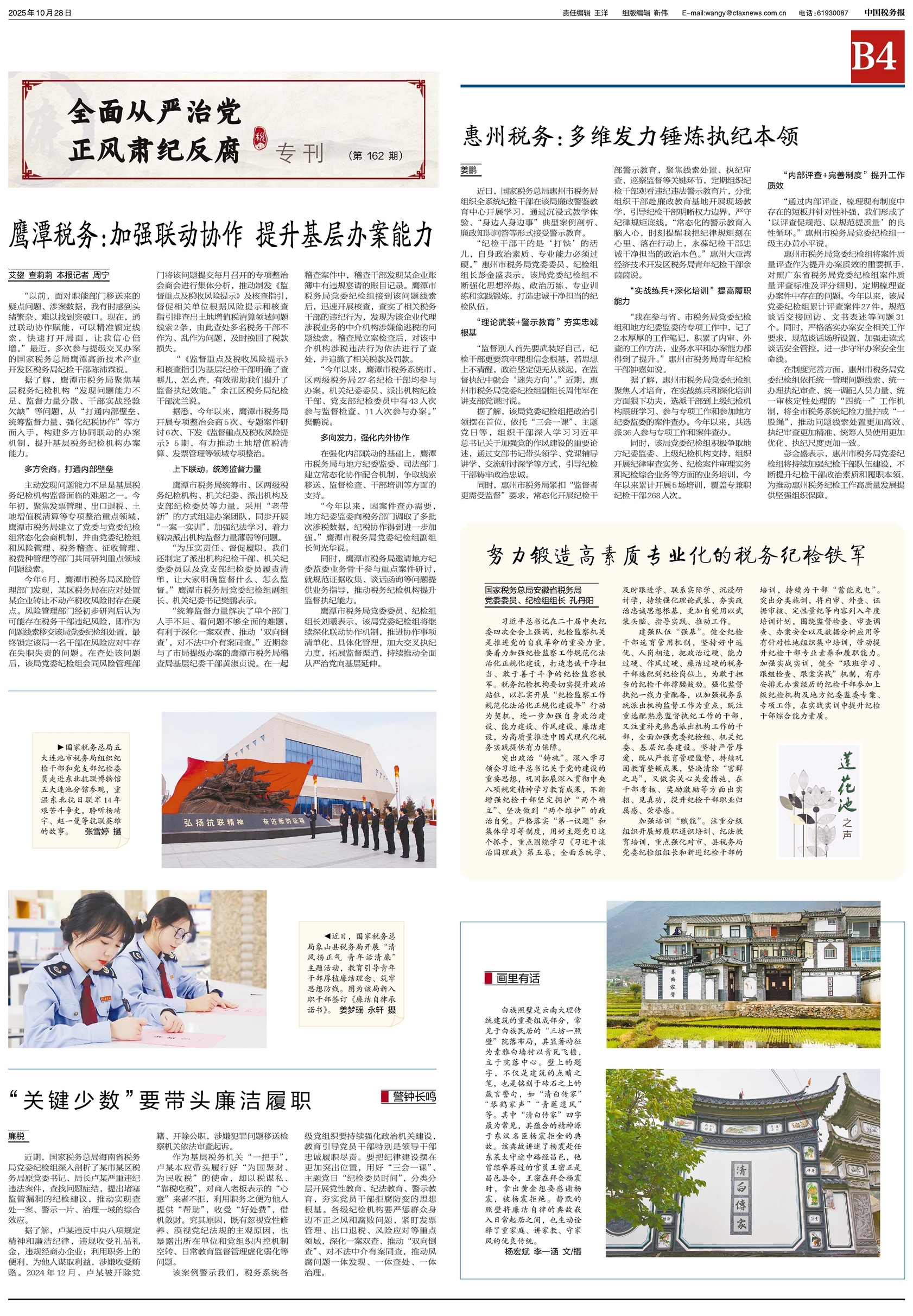 习近平总书记在二十届中央纪委四次全会上强调,纪检监察机关是推进党的自我革命的重要力量,要着力加强纪检监察工作规范化法治化正规化建设,打造忠诚干净担当、敢于善于斗争的纪检监察铁军。税务纪检机构要切实提升政治站位,以扎实开展“
