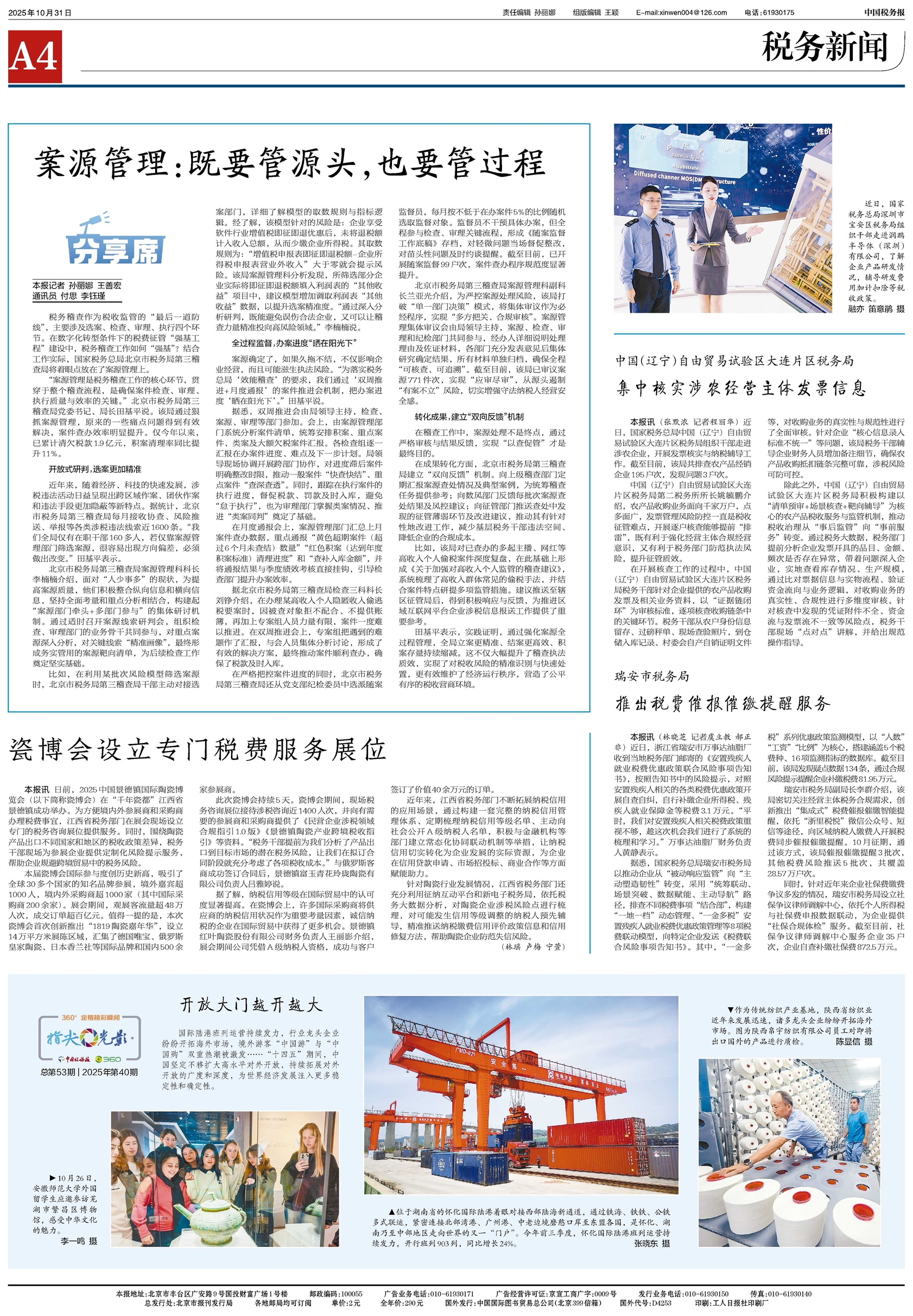 本报讯 日前,2025中国景德镇国际陶瓷博览会(以下简称瓷博会)在“千年瓷都”江西省景德镇成功举办。为方便境内外参展商和采购商办理税费事宜,江西省税务部门在展会现场设立专门的税务咨询展位提供服务。同时,围绕陶瓷产品出口不同
