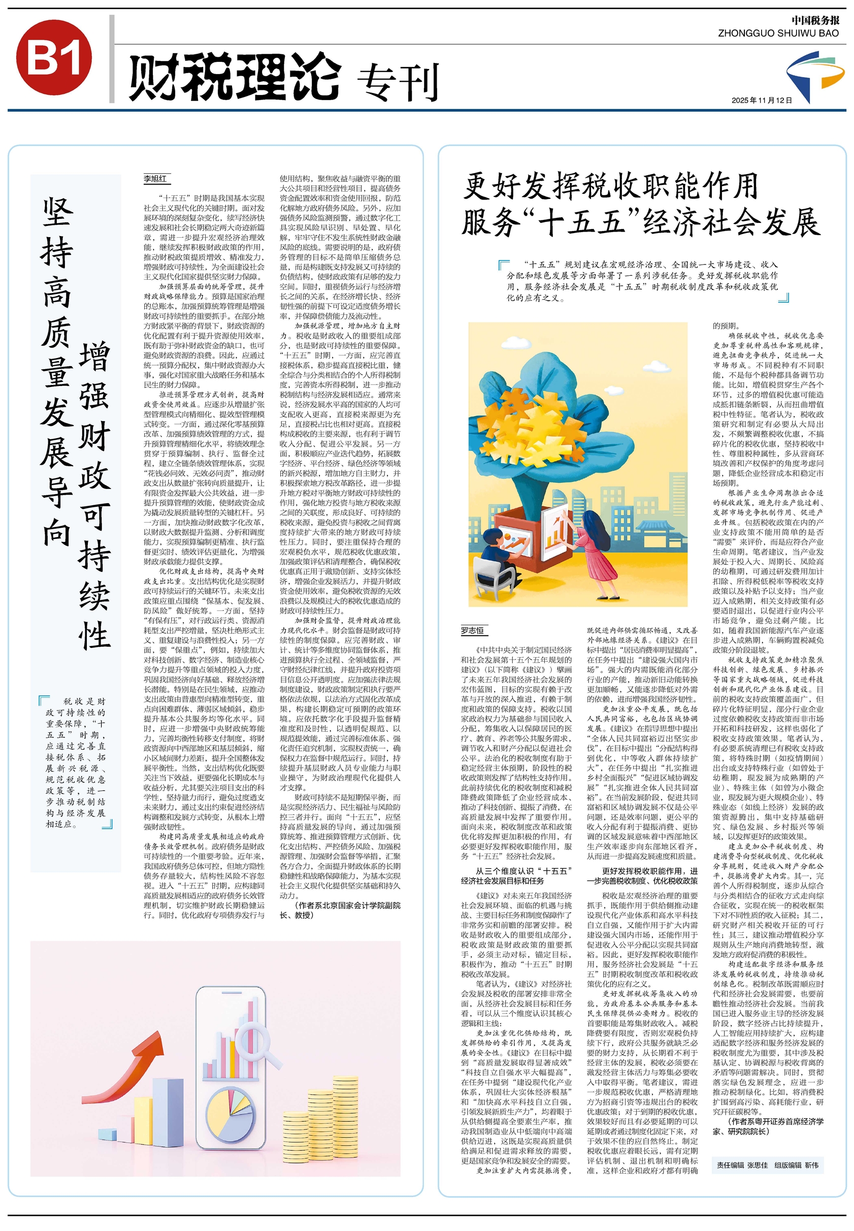 “十五五”规划建议在宏观经济治理、全国统一大市场建设、收入分配和绿色发展等方面部署了一系列涉税任务。更好发挥税收职能作用,服务经济社会发展是“十五五”时期税收制度改革和税收政策优化的应有之义。