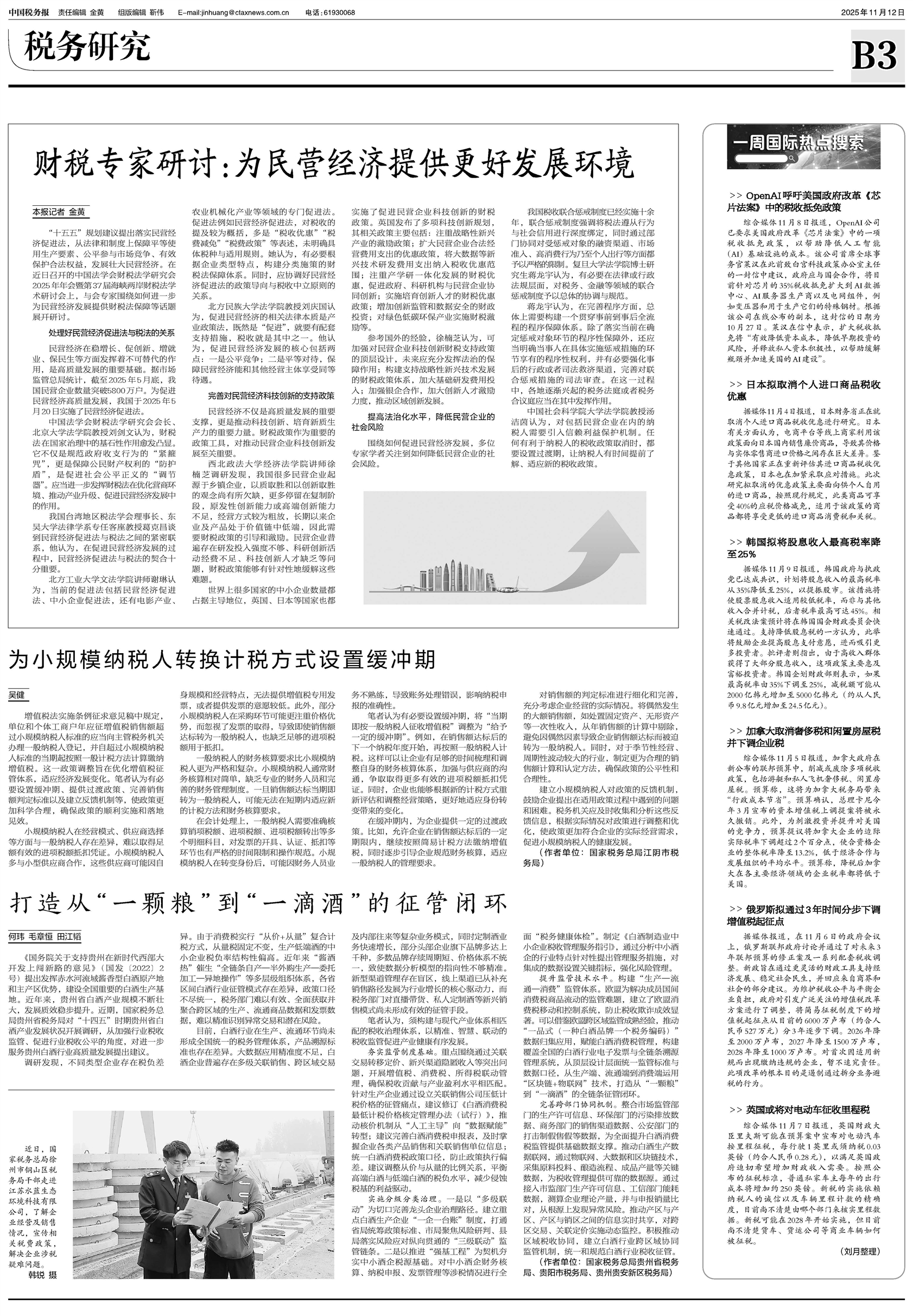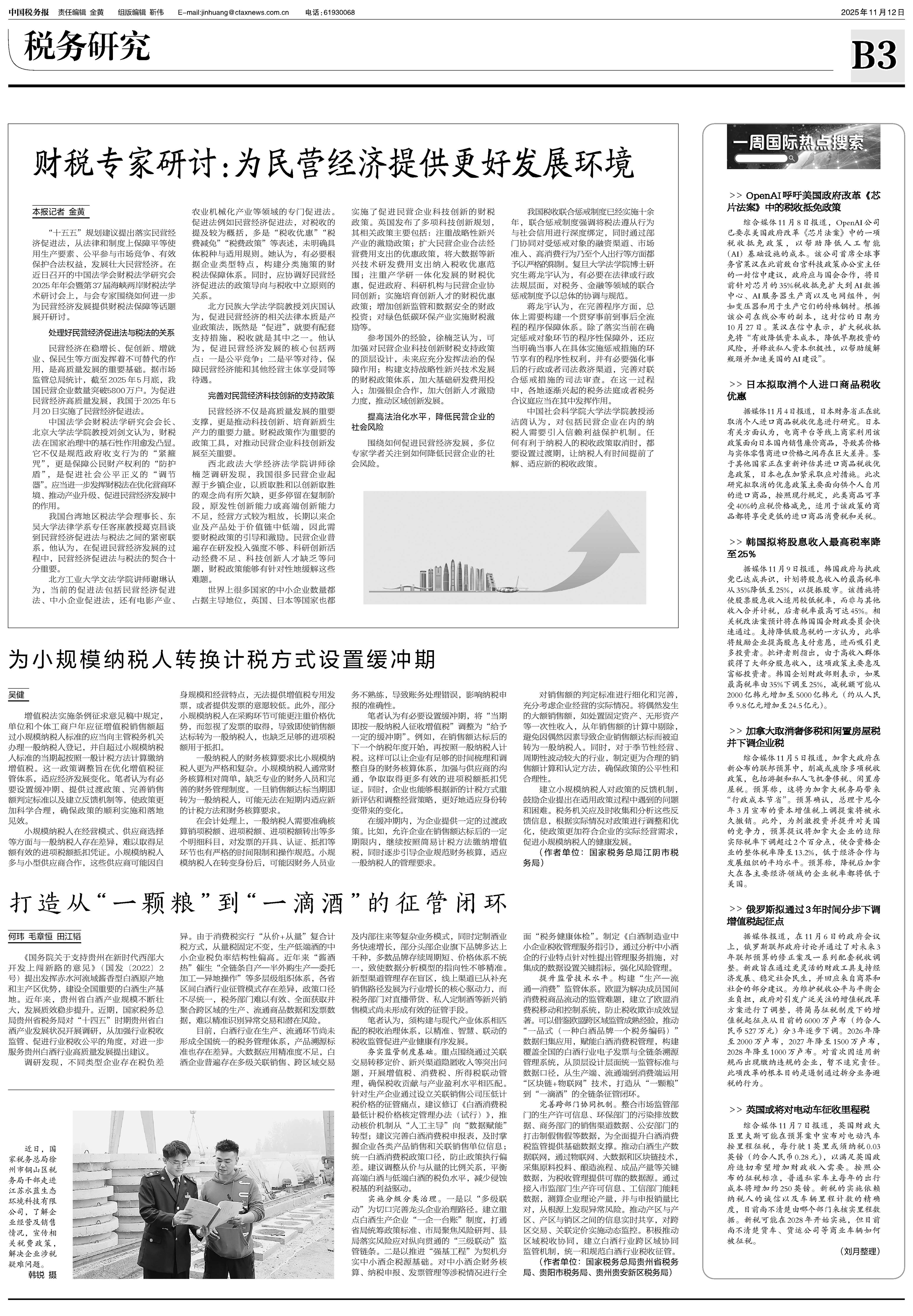 “十五五”规划建议提出落实民营经济促进法,从法律和制度上保障平等使用生产要素、公平参与市场竞争、有效保护合法权益,发展壮大民营经济。在近日召开的中国法学会财税法学研究会2025年年会暨第37届海峡两岸财税法学术研讨会上,与