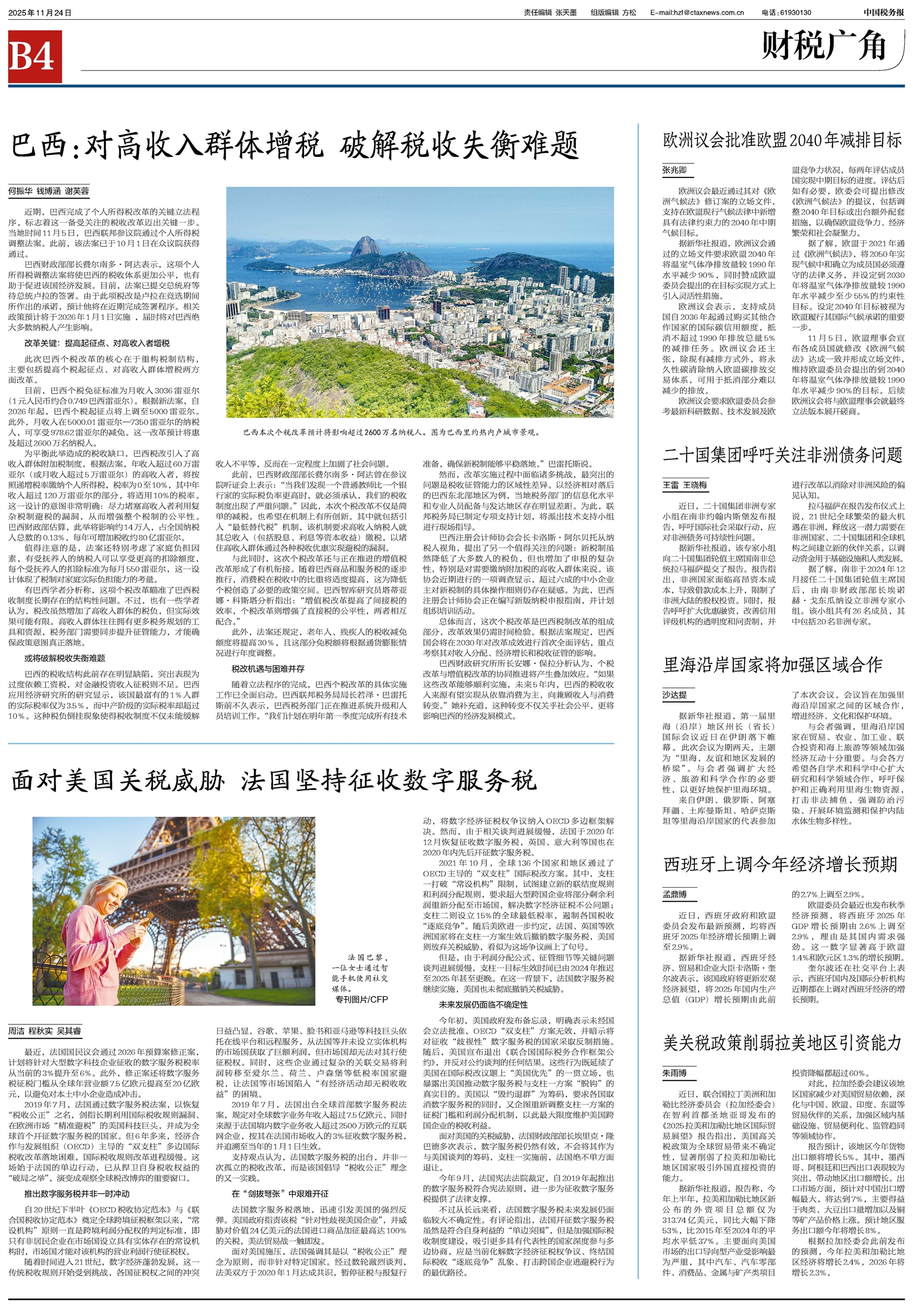 近期,巴西完成了个人所得税改革的关键立法程序,标志着这一备受关注的税收改革迈出关键一步。当地时间11月5日,巴西联邦参议院通过个人所得税调整法案。此前,该法案已于10月1日在众议院获得通过。