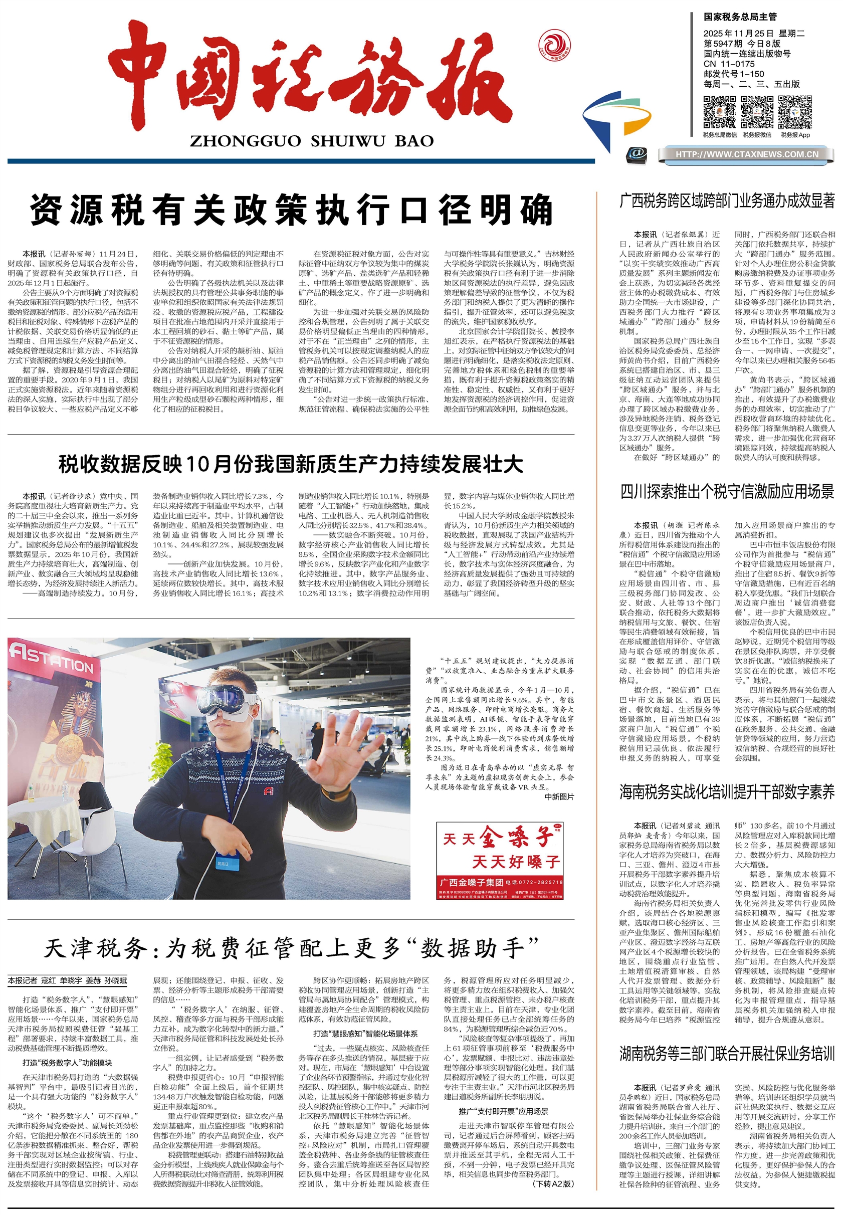 本报讯(记者孙丽娜)11月24日,财政部、国家税务总局联合发布公告,明确了资源税有关政策执行口径,自2025年12月1日起施行。