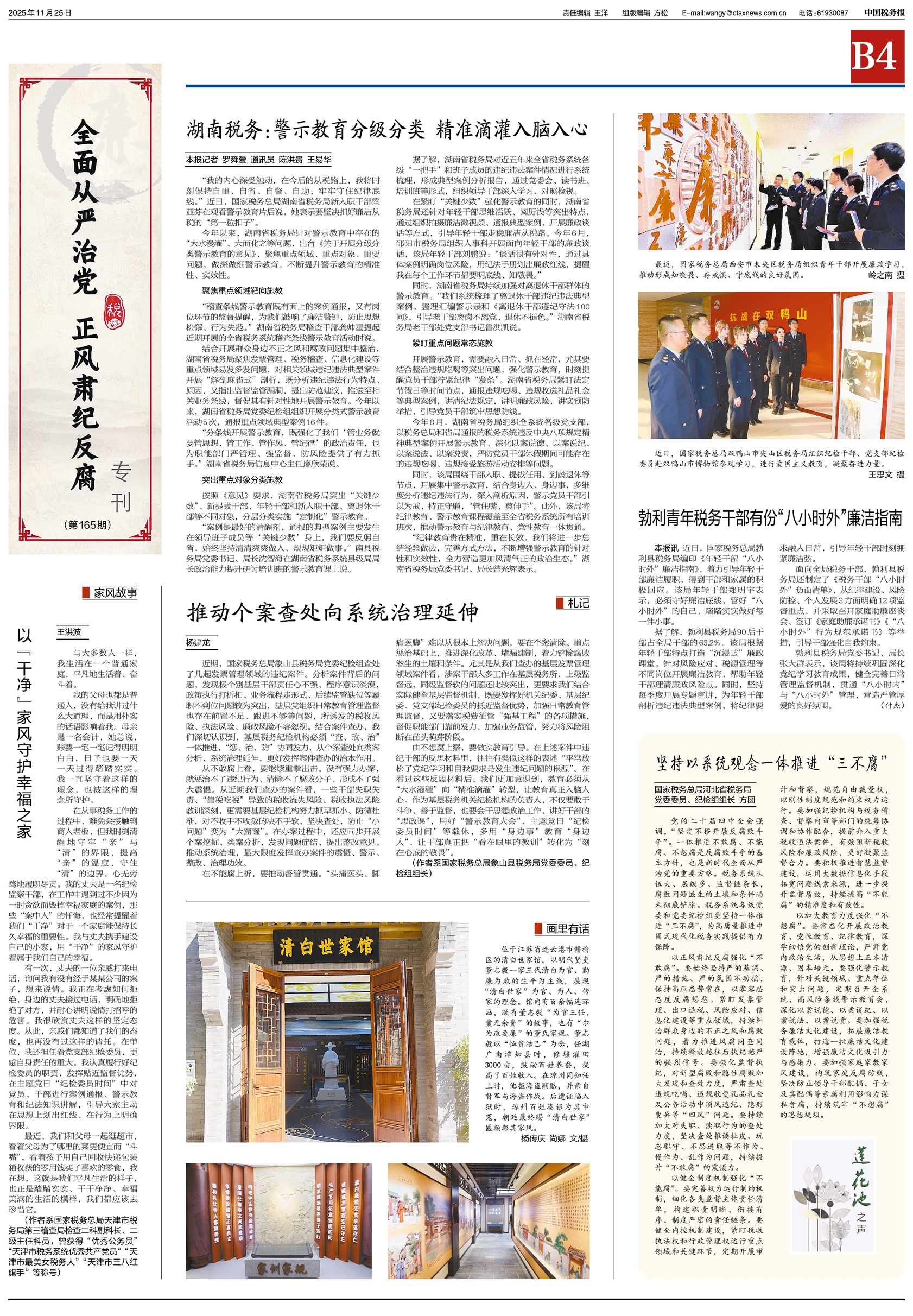 党的二十届四中全会强调,“坚定不移开展反腐败斗争”。一体推进不敢腐、不能腐、不想腐是反腐败斗争的基本方针,也是新时代全面从严治党的重要方略。税务系统队伍大、层级多、监督链条长,腐败问题滋生的土壤和条件尚未彻底铲除。税务系统