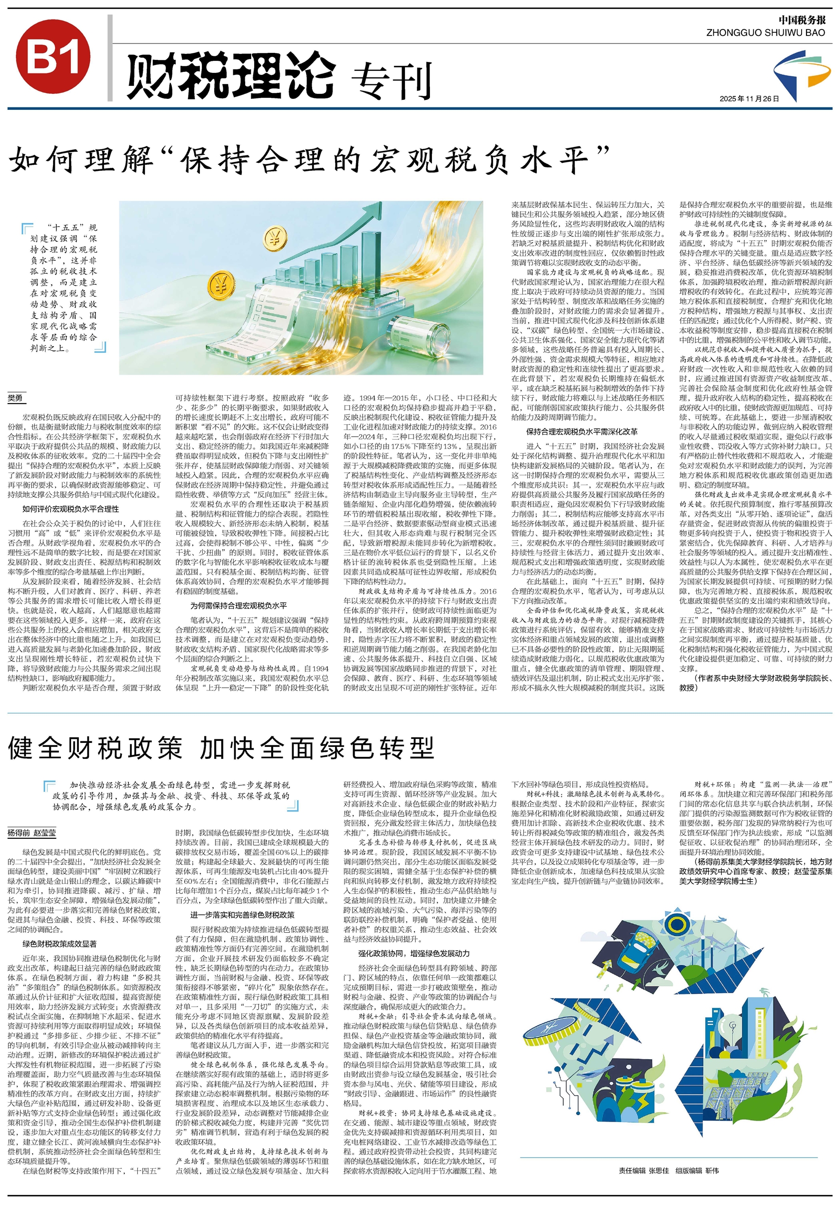 加快推动经济社会发展全面绿色转型,需进一步发挥财税政策的引导作用,加强其与金融、投资、科技、环保等政策的协调配合,增强绿色发展的政策合力。
