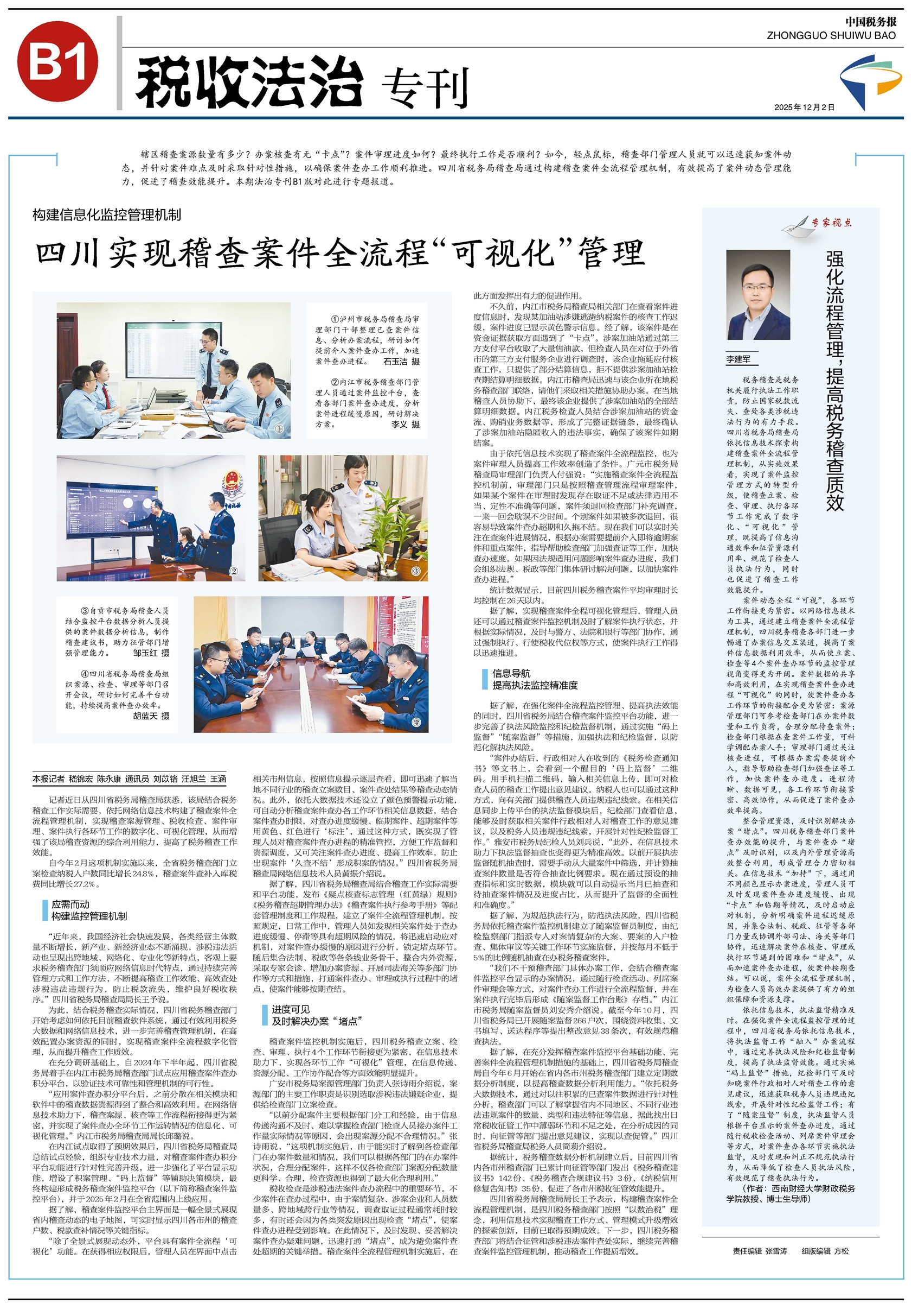记者近日从四川省税务局稽查局获悉,该局结合税务稽查工作实际需要,依托网络信息技术构建了稽查案件全流程管理机制,实现稽查案源管理、税收检查、案件审理、案件执行各环节工作的数字化、可视化管理,从而增强了该局稽查资源的综合利用能