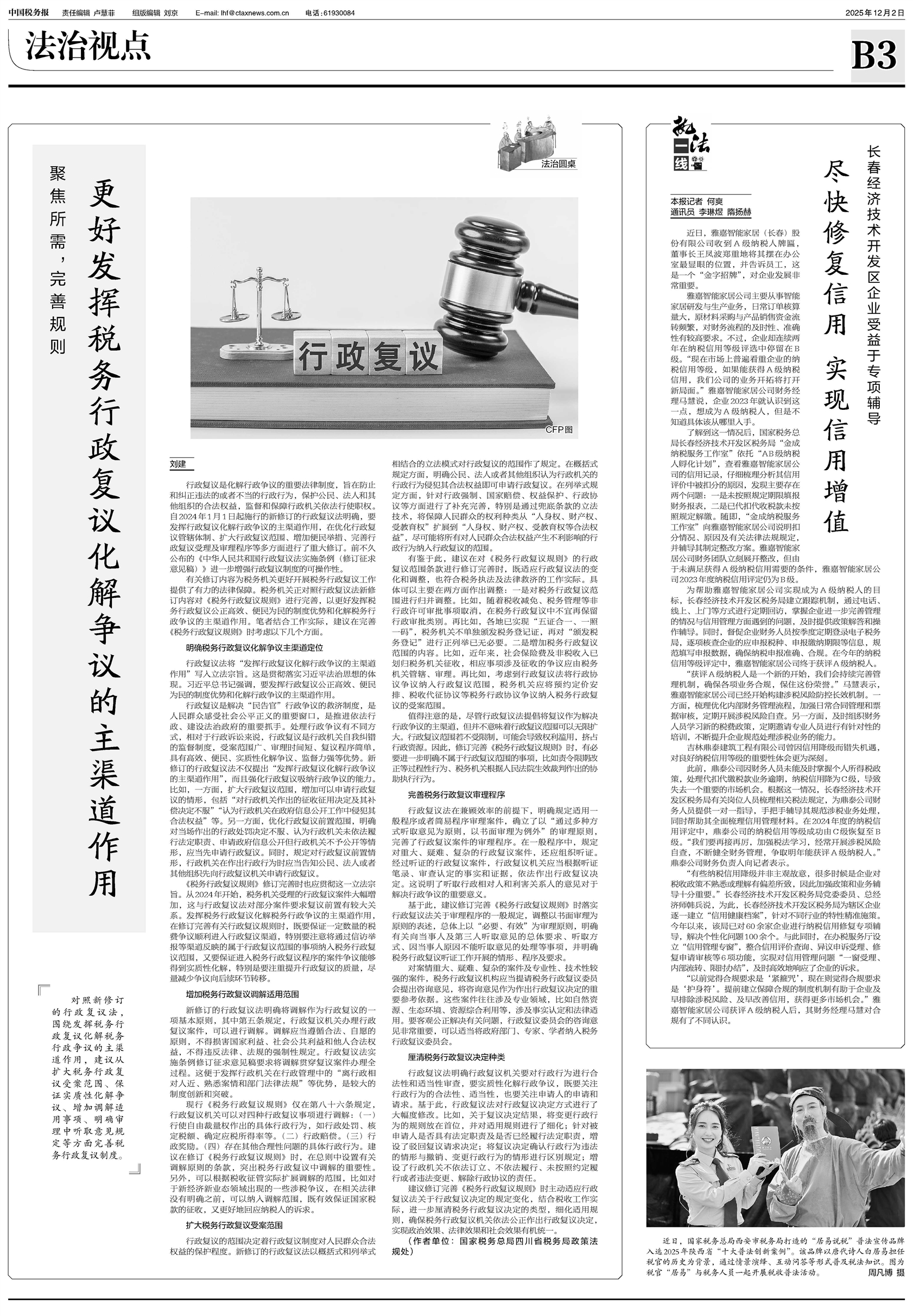 对照新修订的行政复议法,围绕发挥税务行政复议化解税务行政争议的主渠道作用,建议从扩大税务行政复议受案范围、保证实质性化解争议、增加调解适用事项、明确审理中听取意见规定等方面完善税务行政复议制度。