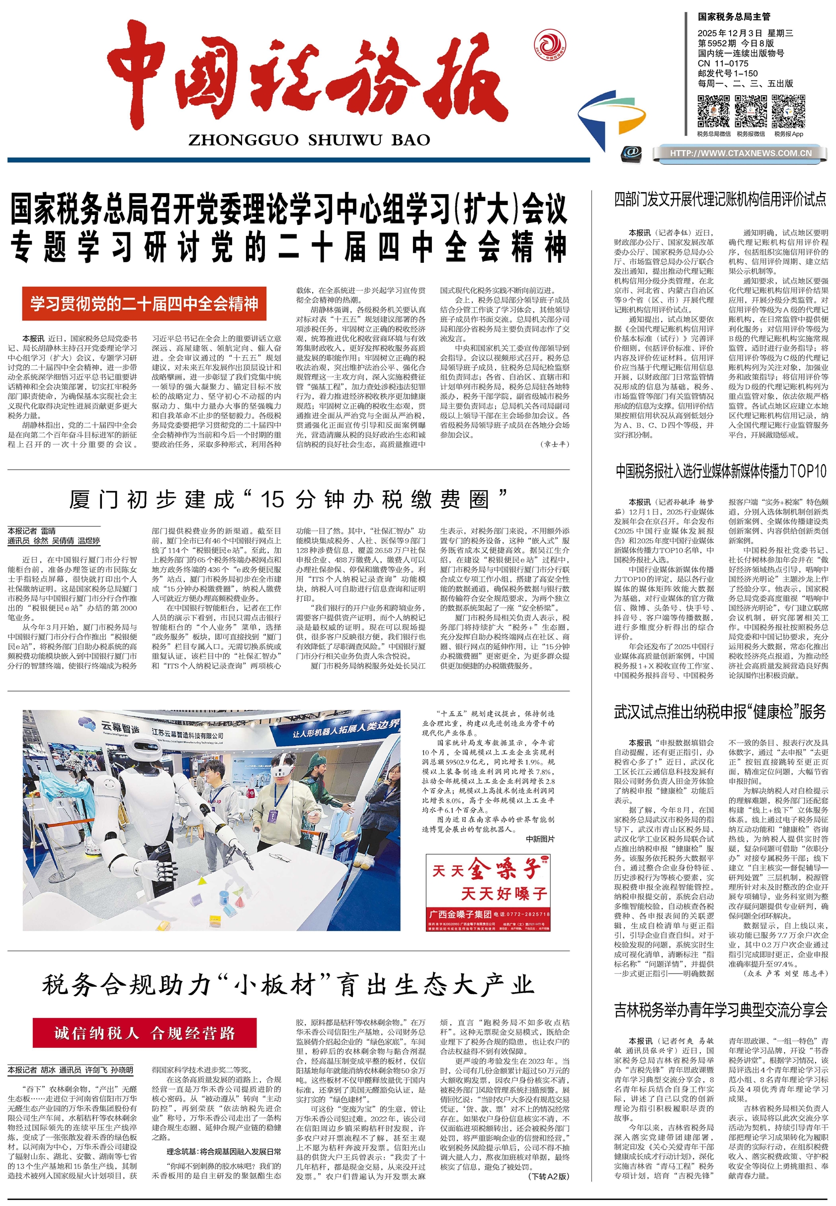 本报讯(记者孙毓泽 杨梦茹)12月1日,2025行业媒体发展年会在京召开。年会发布《2025中国行业媒体发展报告》和2025年度中国行业媒体新媒体传播力TOP10名单,中国税务报社入选。
