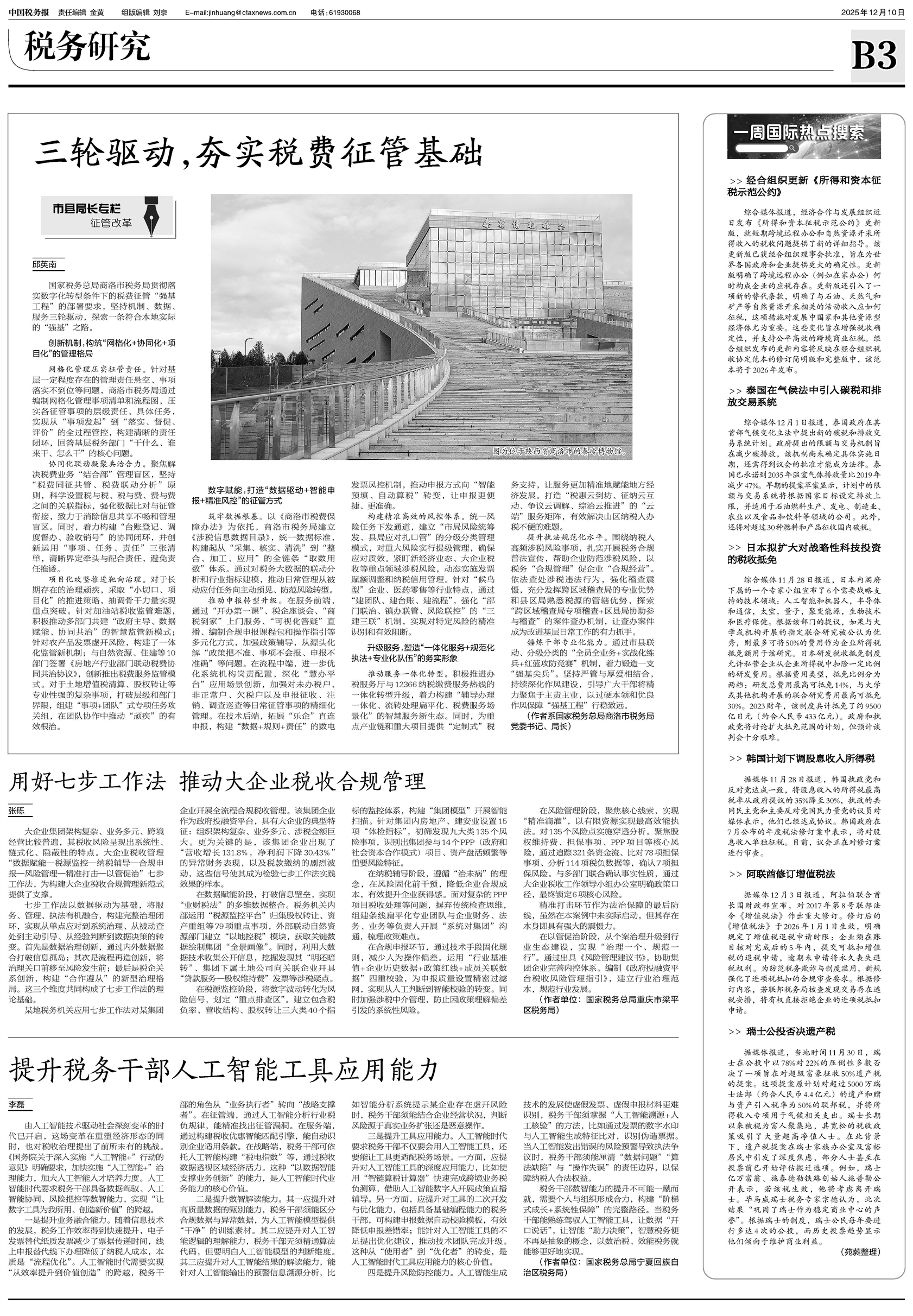 由人工智能技术驱动社会深刻变革的时代已开启,这场变革在重塑经济形态的同时,也对税收治理提出了前所未有的挑战。《国务院关于深入实施“人工智能+”行动的意见》明确要求,加快实施“人工智能+”治理能力,加大人工智能人才培养力度。