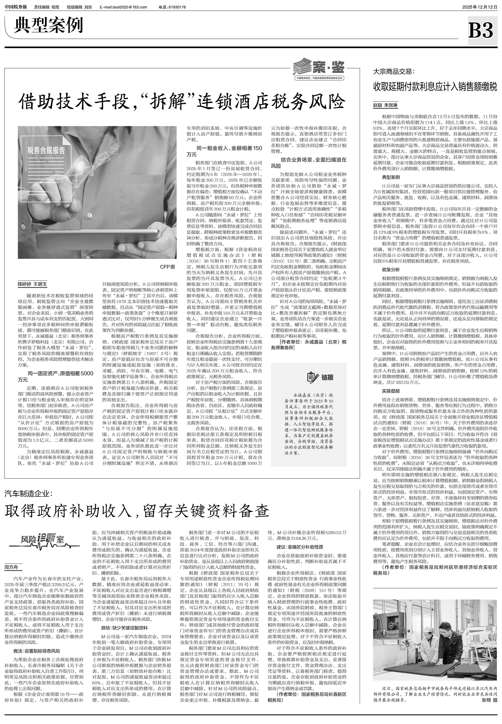 汽车产业作为长春市的支柱产业,2025年前三季度产值达3299.3亿元,产业竞争力稳步提升。在汽车产业发展中,部分汽车制造企业能够依据政府的产业支持政策,获取各类政府补助。国家税务总局长春市税务局在风险核查时发现,一些汽车