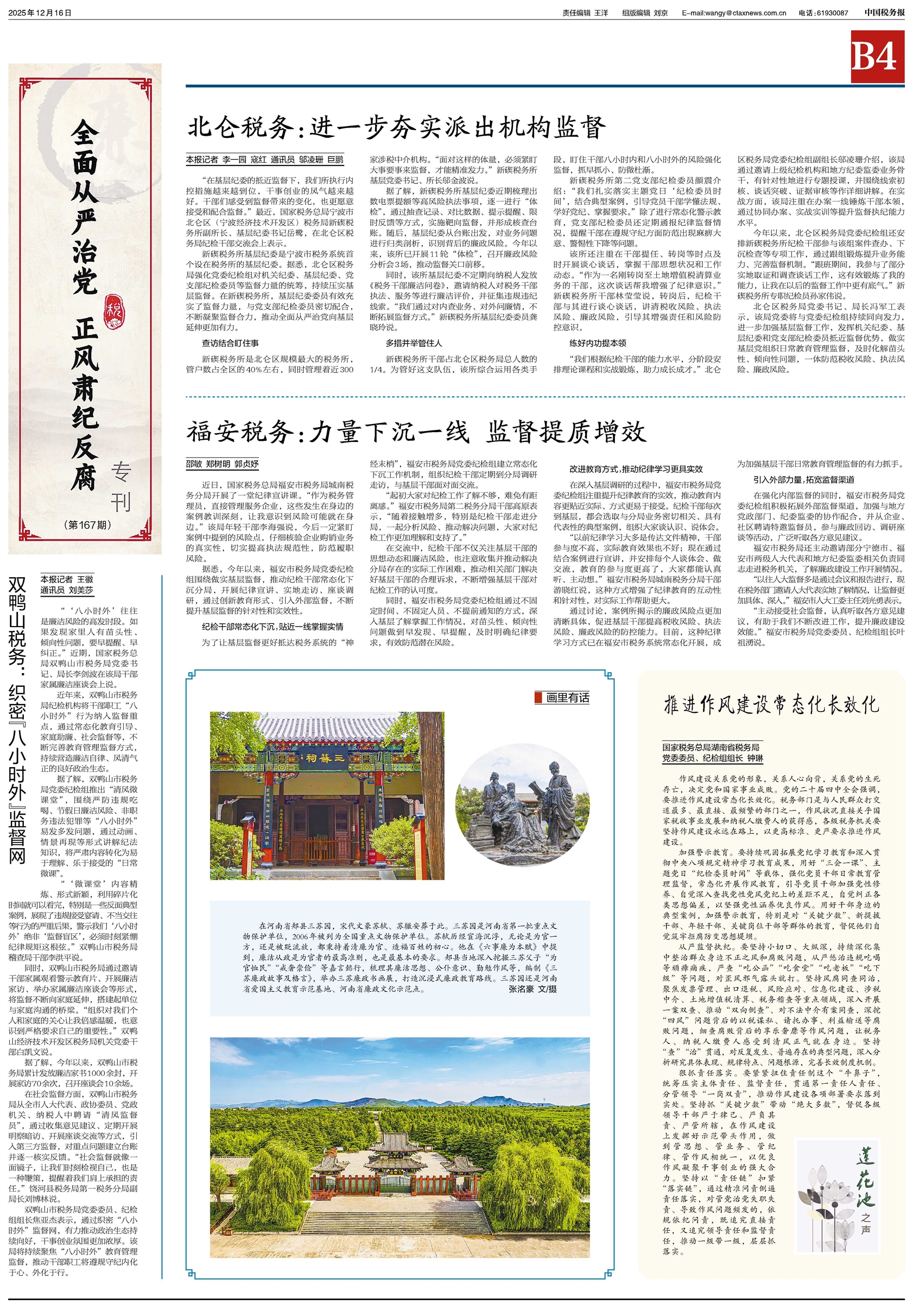 作风建设关系党的形象,关系人心向背,关系党的生死存亡,决定党和国家事业成败。党的二十届四中全会强调,要推进作风建设常态化长效化。税务部门是与人民群众打交道最多、最直接、最频繁的部门之一,作风状况直接关乎国家税收事业发展和纳