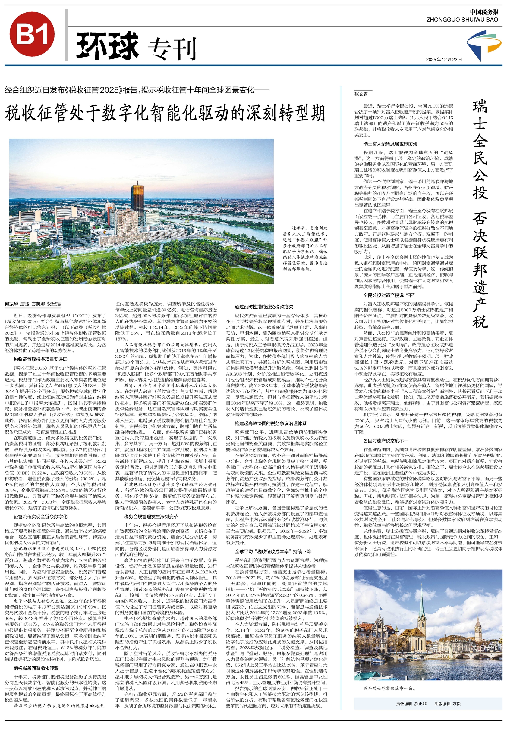 最近,瑞士举行全民公投,全国78.3%的选民否决了一项针对富人征收遗产税的提案。该提案计划对超过5000万瑞士法郎(1元人民币约合0.113瑞士法郎)的遗产和赠予资产征收税率为50%的联邦税,并将税收收入专项用于应对气候变