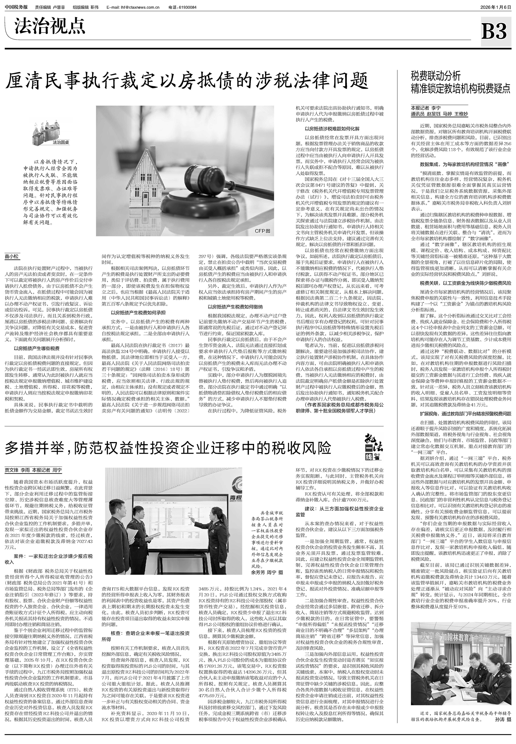 随着我国资本市场活跃度提升,权益性投资企业跨区域迁移日益频繁。在此背景下,部分企业利用迁移过程中的监管衔接空隙、历史涉税信息核查难度大等管理薄弱环节,规避往期纳税义务,给税收征管带来挑战。近期,国家税务总局九江市税务局按照