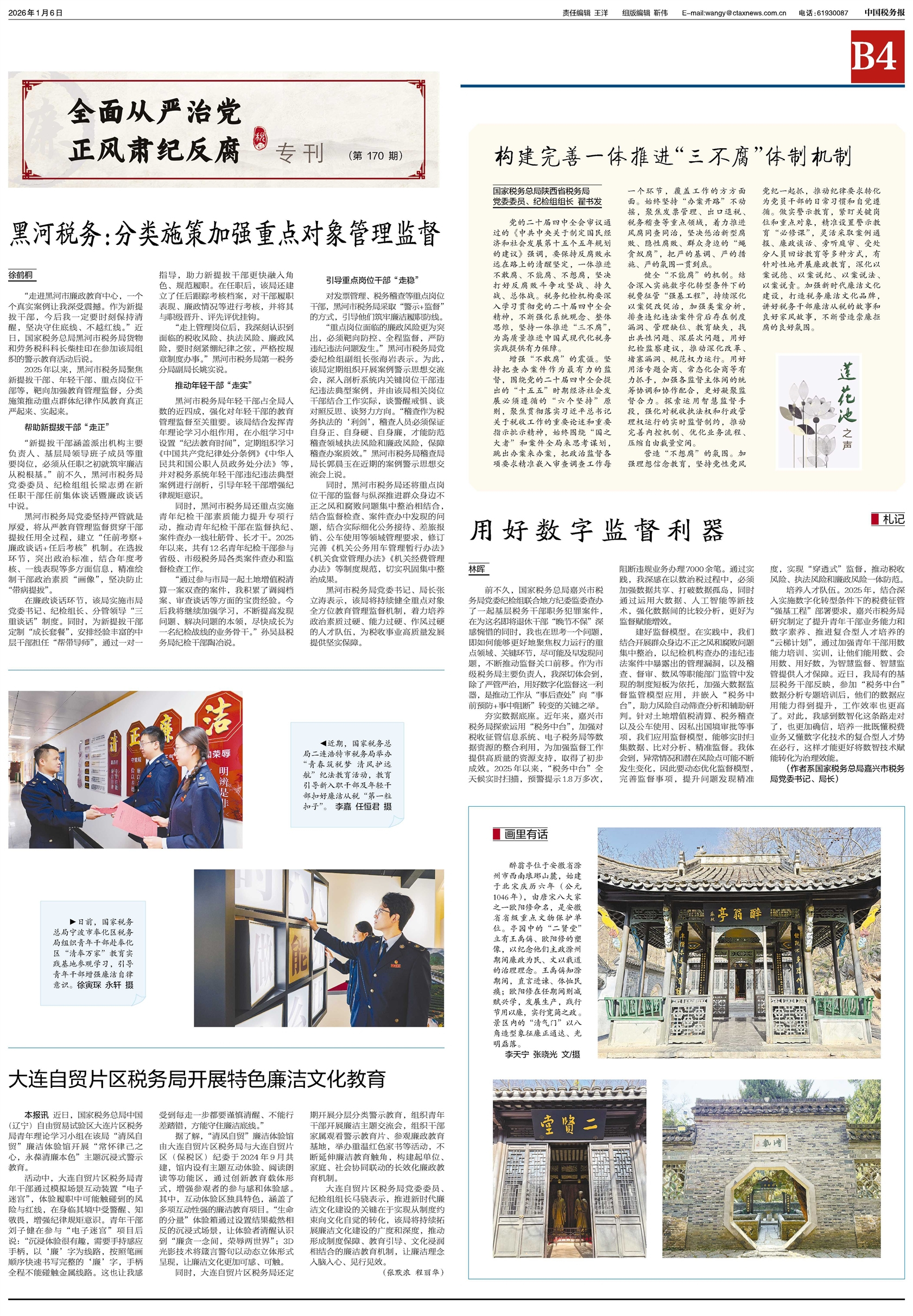 本报讯 近日,国家税务总局中国(辽宁)自由贸易试验区大连片区税务局青年理论学习小组在该局“清风自贸”廉洁体验馆开展“常怀律己之心,永葆清廉本色”主题沉浸式警示教育。