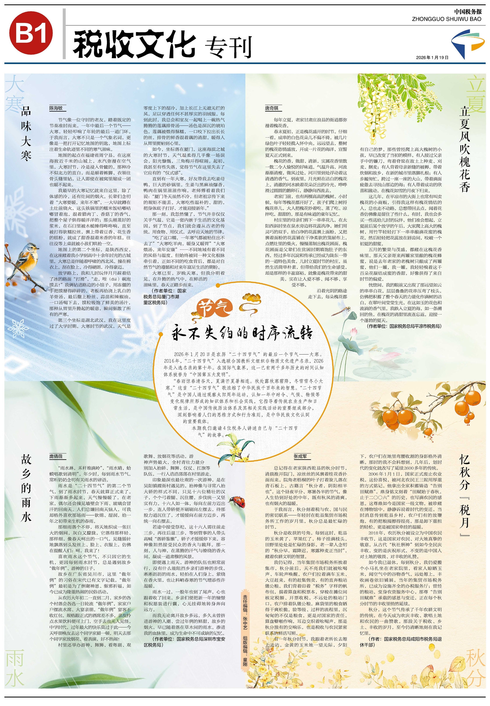 2026年1月20日是农历“二十四节气”的最后一个节气——大寒。2016年,“二十四节气”入选联合国教科文组织非物质文化遗产名录,2026年是入选名录的第十年。在国际气象界,这一已有两千多年历史的时间认知体系被誉为“中国第