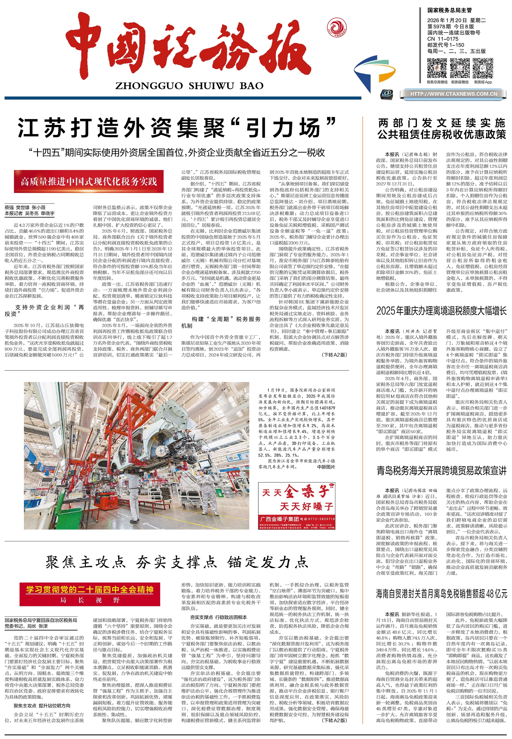 党的二十届四中全会审议通过的“十五五”规划建议,明确“十五五”时期是基本实现社会主义现代化夯实基础、全面发力的关键时期。宁夏税务部门要紧盯经济社会发展主要目标,聚焦“夯实基础”和“全面发力”两个关键点,从明方向、固根本、提