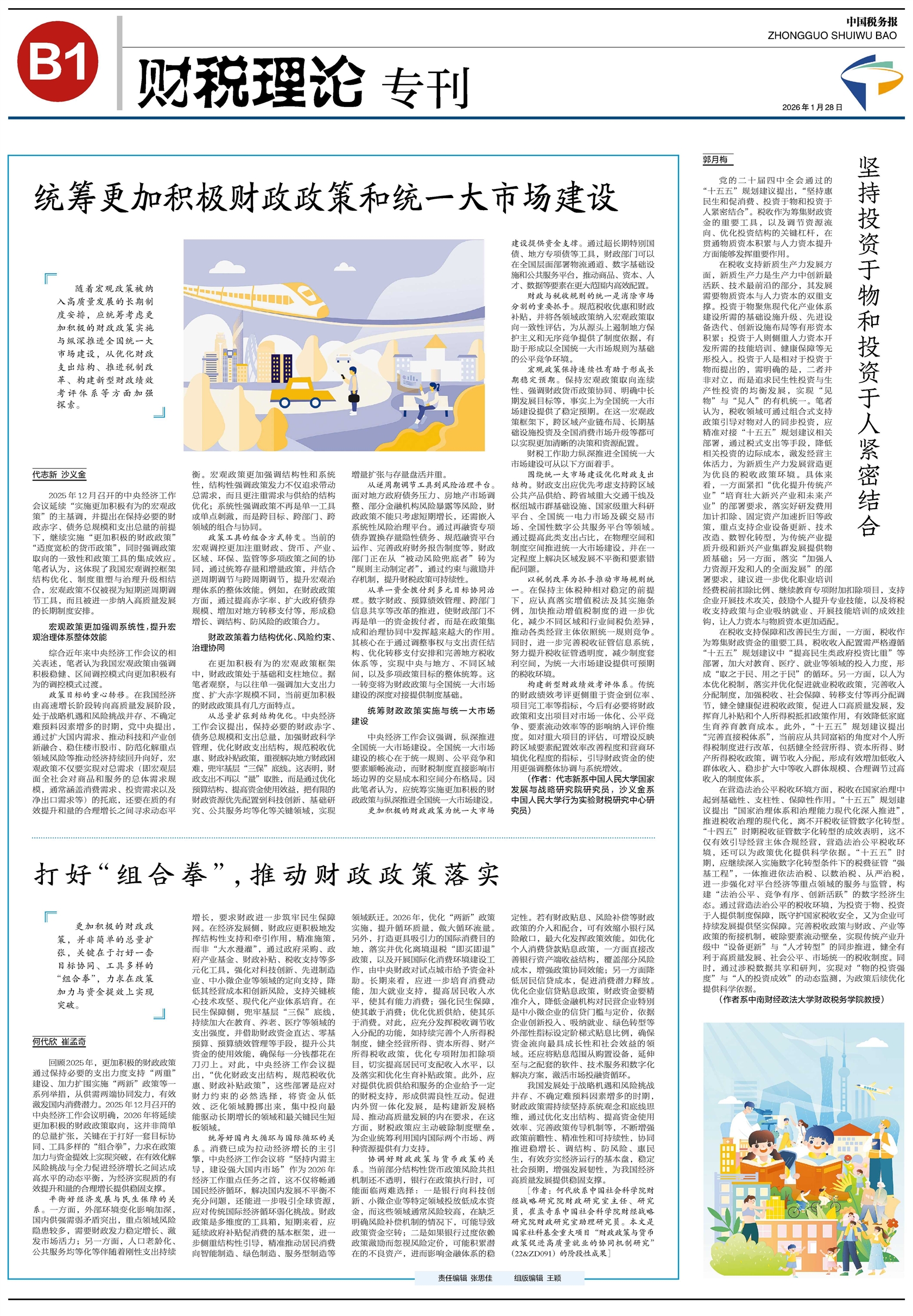 党的二十届四中全会通过的“十五五”规划建议提出,“坚持惠民生和促消费、投资于物和投资于人紧密结合”。税收作为筹集财政资金的重要工具,以及调节资源流向、优化投资结构的关键杠杆,在贯通物质资本积累与人力资本提升方面能够发挥重要