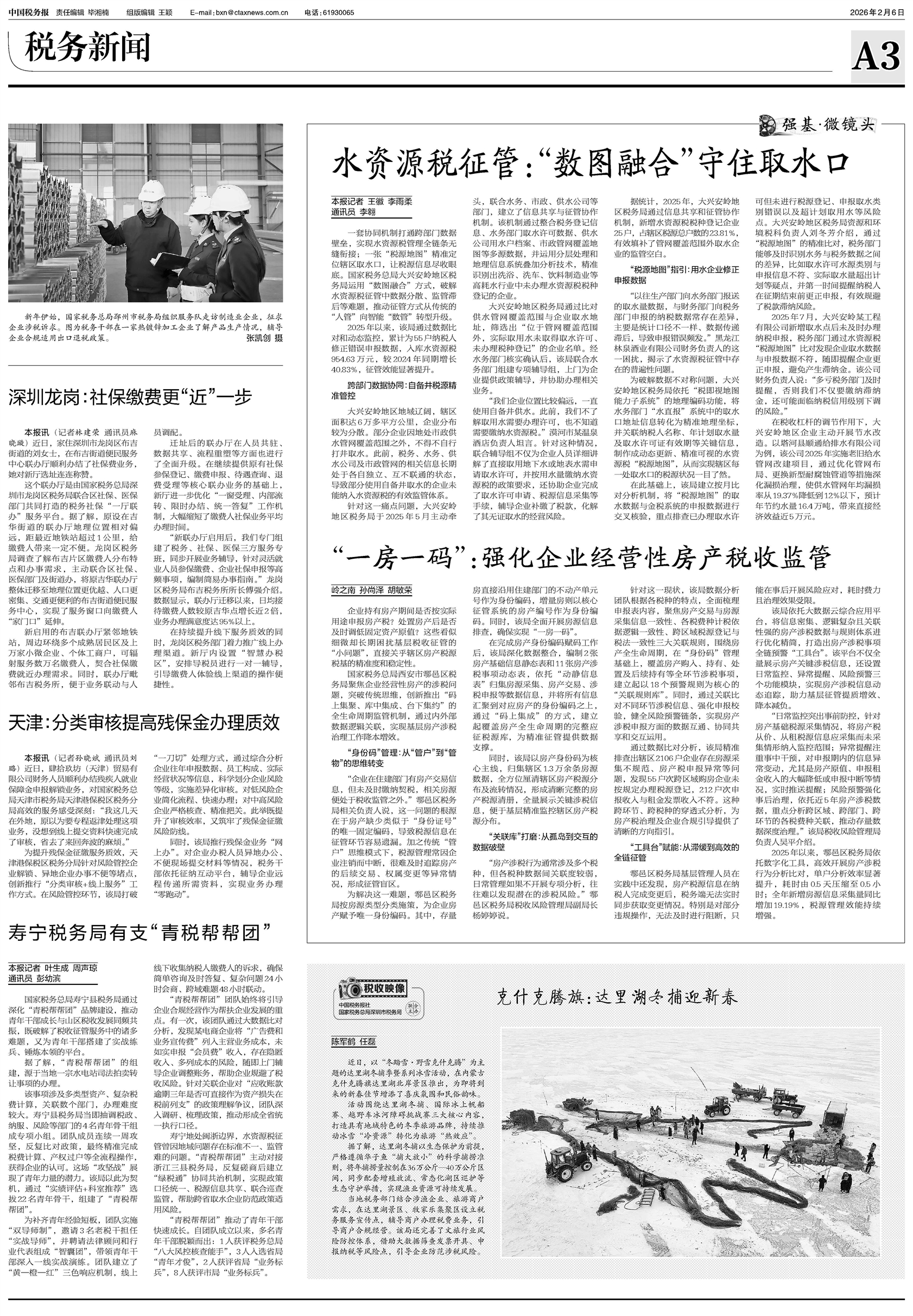 一套协同机制打通跨部门数据壁垒,实现水资源税管理全链条无缝衔接;一张“税源地图”精准定位辖区取水口,让税源信息尽收眼底。国家税务总局大兴安岭地区税务局运用“数图融合”方式,破解水资源税征管中数据分散、监管滞后等难题,推动征