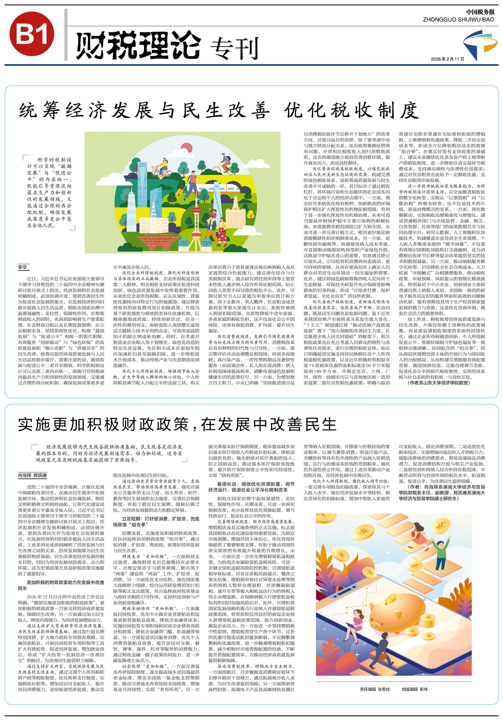 科学的税制设计可以实现“激励发展”与“促进公平”的内在统一,既能引导资源流向最具生产力和创新性的发展领域,又能通过合理的再分配机制,确保发展成果更多更公平惠及全体人民。