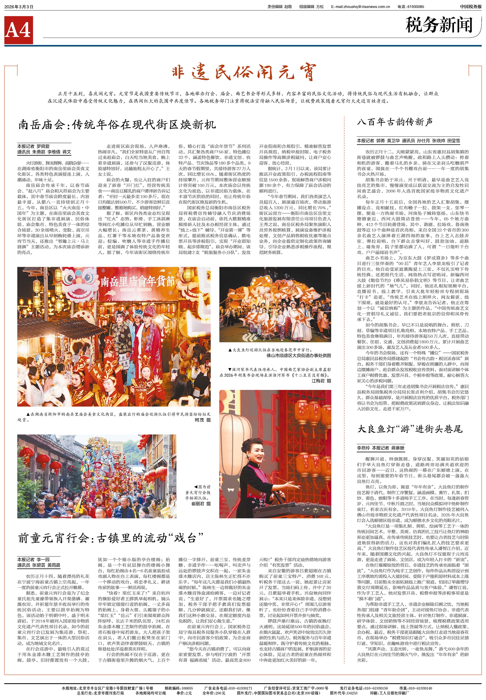 正月十五到,喜庆闹元宵。元宵节是我国重要传统节日,各地举办灯会、庙会、曲艺书会等形式多样、内容丰富的民俗文化活动,将传统民俗与现代生活有机融合,让群众在沉浸式体验中感受传统文化魅力,在热闹红火的氛围中共度佳节。各地税务部门