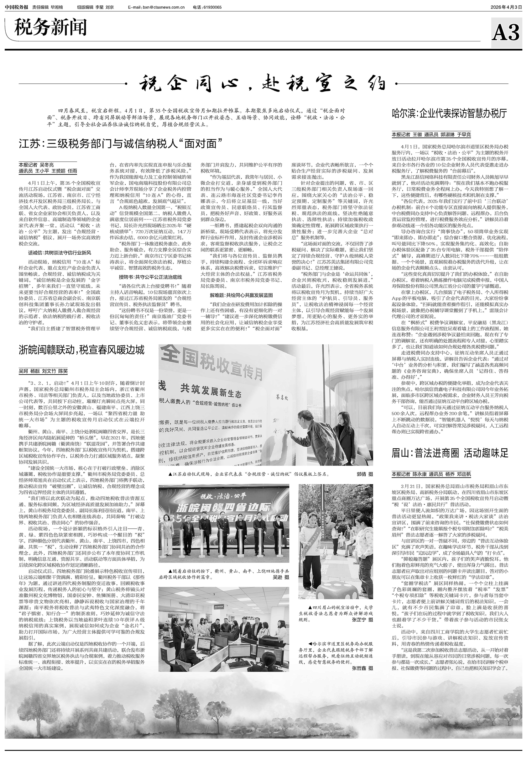 四月春风至,税宣启新程。4月1日,第35个全国税收宣传月如期拉开帷幕。本期聚焦多地启动仪式,通过“税企面对面”、税务开放日、跨省同屏联动等鲜活场景,展现各地税务部门以开放姿态、互动场景、协同效能,诠释“税收・法治・公平”主