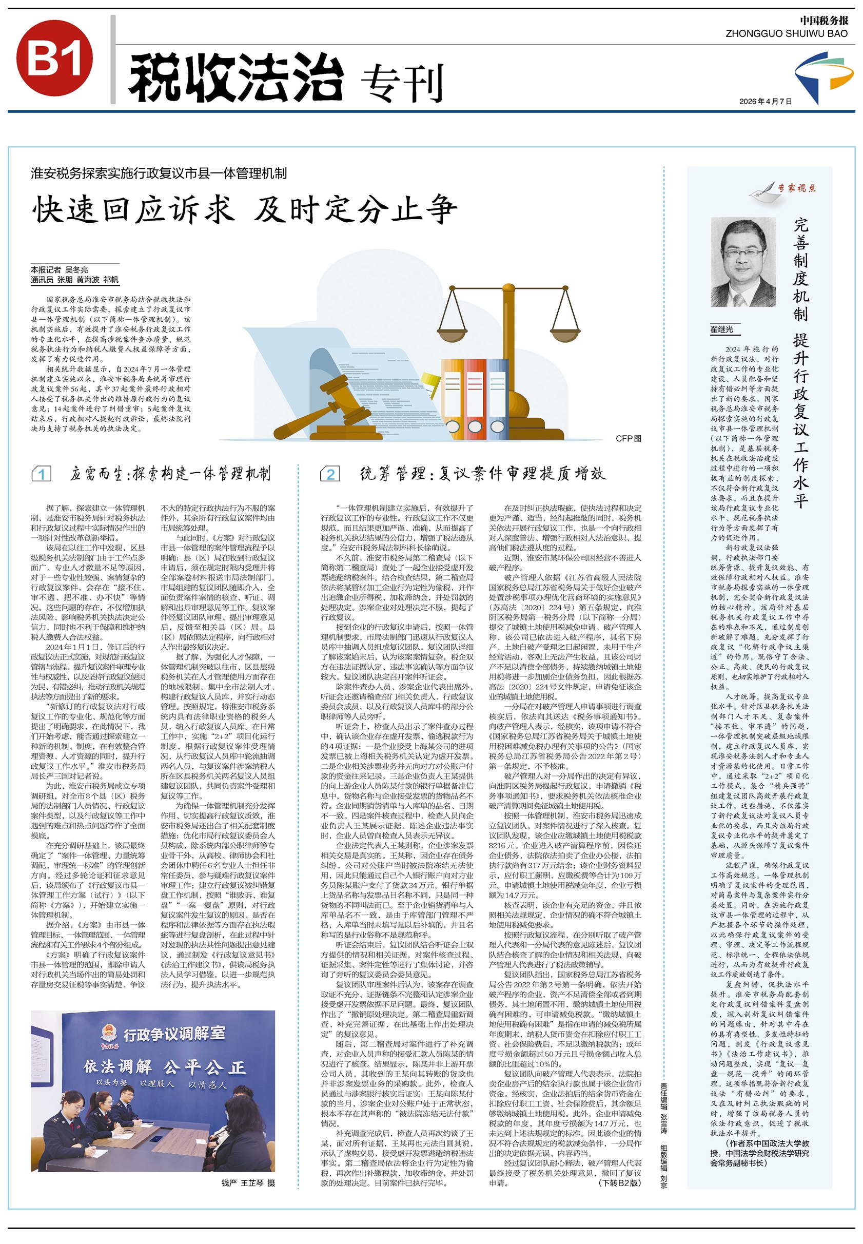 2024年施行的新行政复议法,对行政复议工作的专业化建设、人员配备和坚持有错必纠等方面提出了新的要求。国家税务总局淮安市税务局探索实施的行政复议市县一体管理机制(以下简称一体管理机制),是基