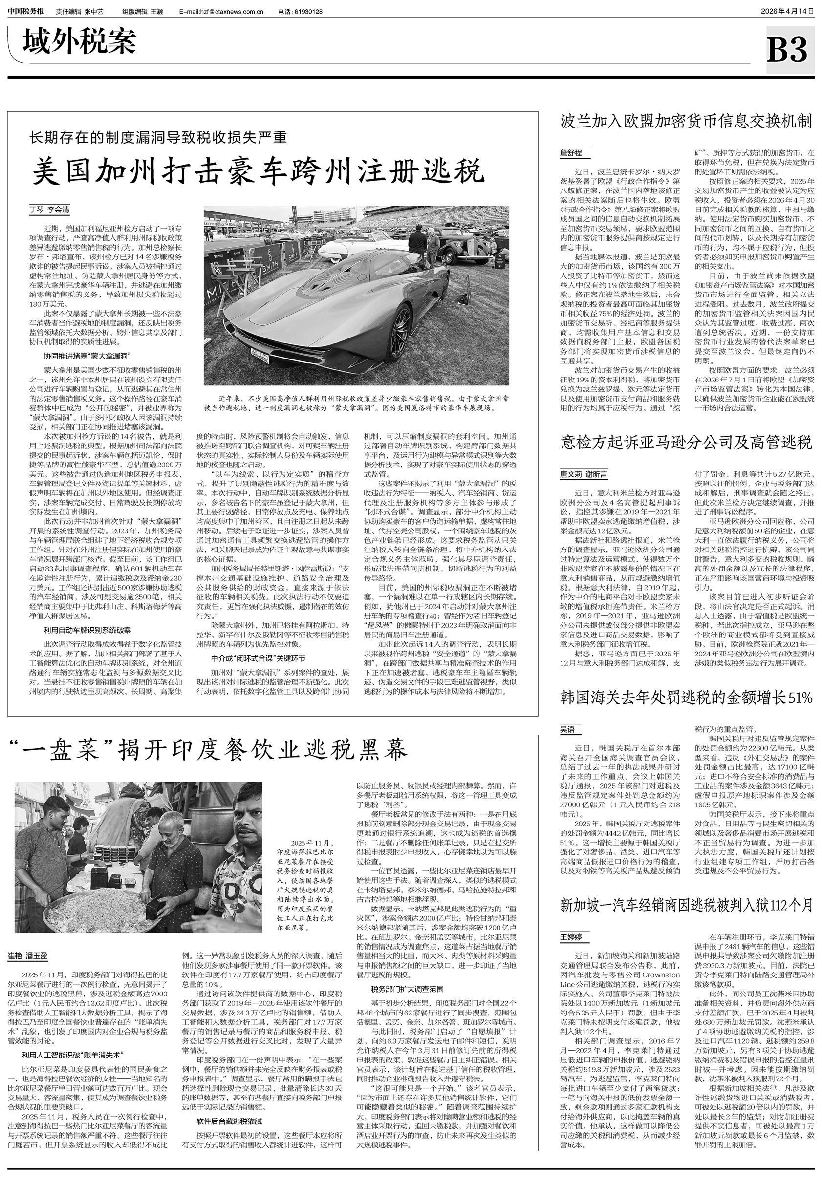 近日,韩国关税厅在首尔本部海关召开全国海关调查官员会议,总结了过去一年的执法成果并研讨了未来的工作重点。会议上韩国关税厅通报,2025年该部门对逃税及违反监管规定案件处罚总金额约为27000亿韩元(1元人民币约合218韩元