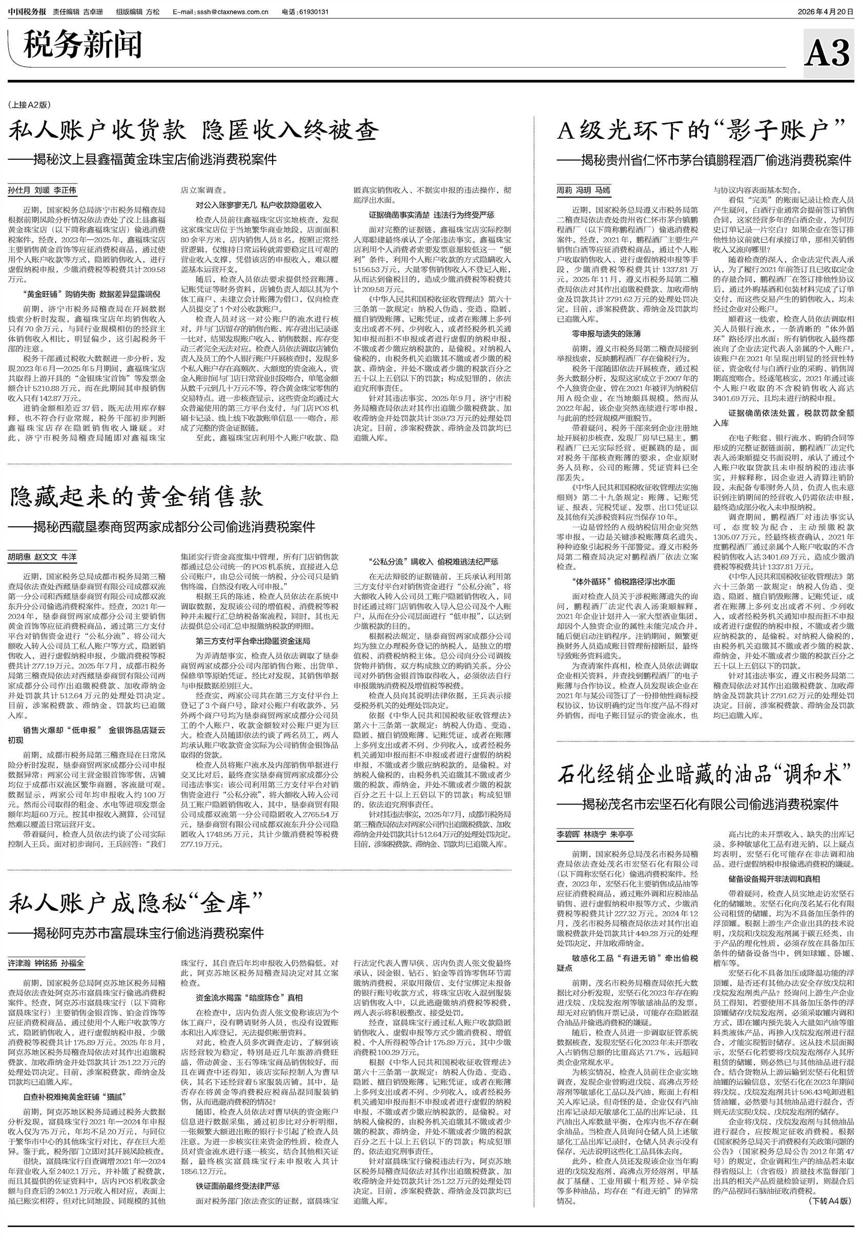 近期,国家税务总局成都市税务局第三稽查局依法查处西藏垦泰商贸有限公司成都双流第一分公司和西藏垦泰商贸有限公司成都双流东升分公司偷逃消费税案件。经查,2021年—2024年,垦泰商贸两家成都分公司主要销售黄金首饰等应征消费税