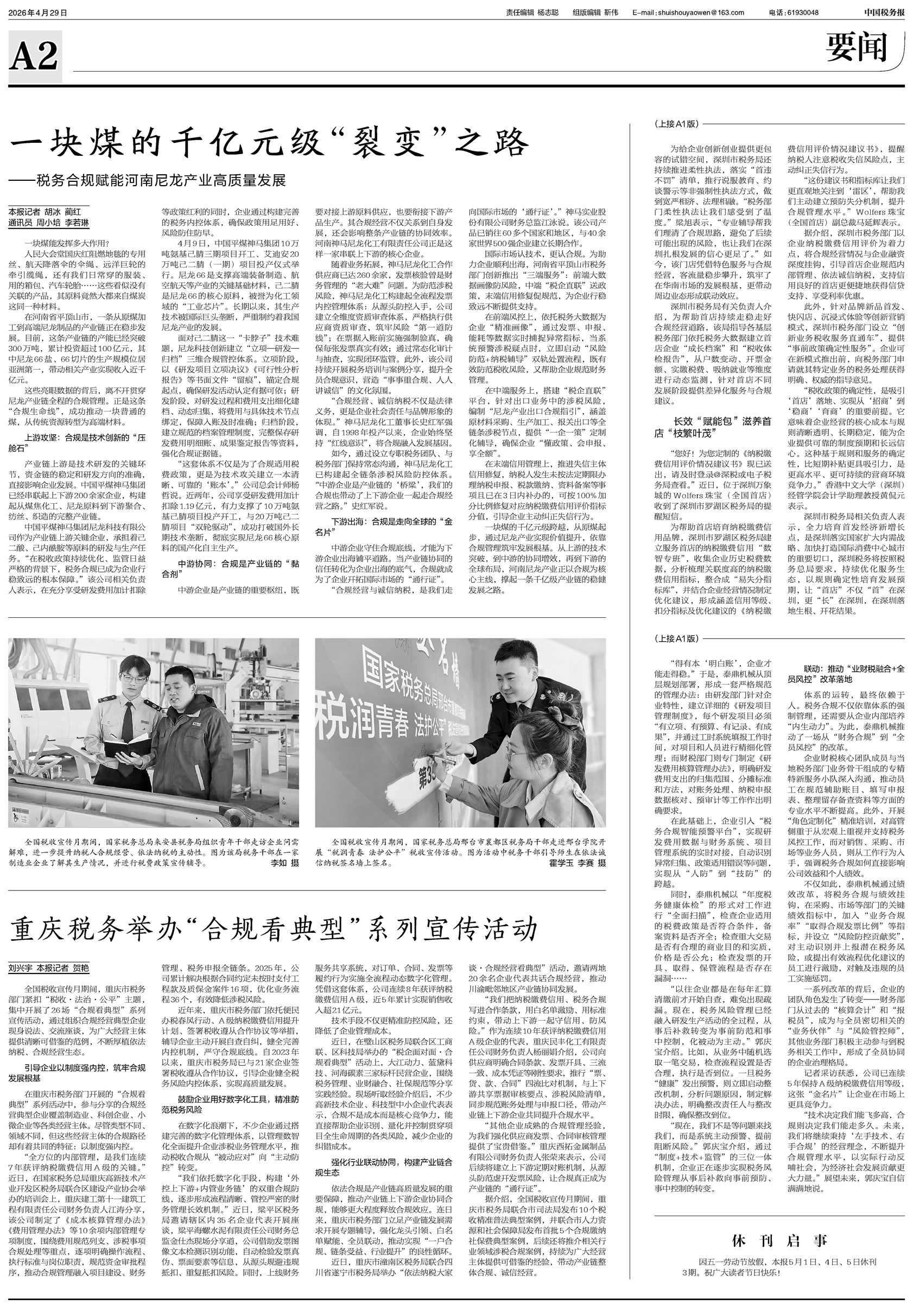 因五一劳动节放假,本报5月1日、4日、5日休刊3期。祝广大读者节日快乐!